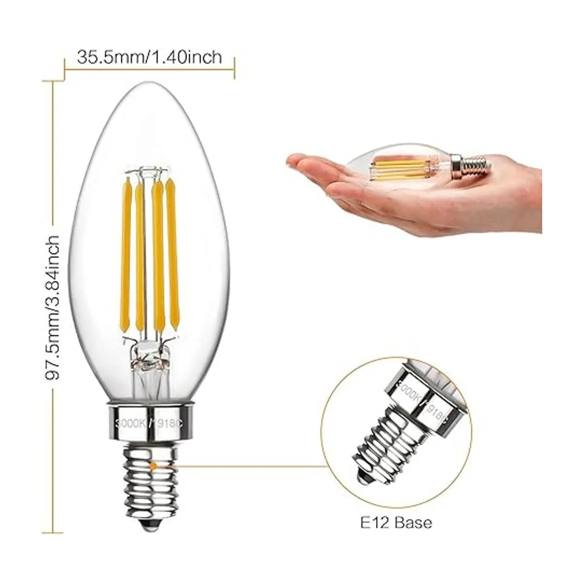 Ahorra dinero y tiempo: estas bombillas LED de filamento solo consumen 6 W de potencia, mientras que ofrecen el mismo brillo de la bombilla incandescente de 60 W, ahorra más del 90 en la factura de electricidad. Nuestras bombillas LED de candelabro ofrecen una vida útil de hasta 15.000 horas, reduciendo la frecuencia para volver a lámpara.
