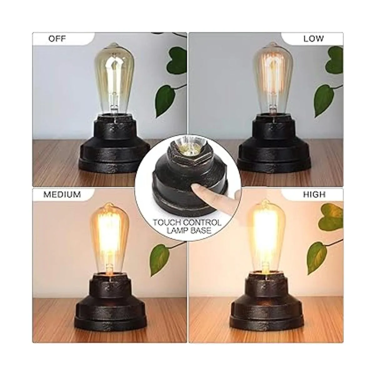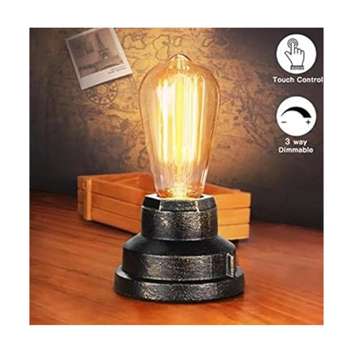 Boncoo Lámpara de mesa con control táctil, lámpara de escritorio vintage, pequeña luz táctil industrial, lámpara de mesita de noche regulable, luz de acento Steampunk, base de lámpara Edison antigua luz nocturna para sala de estar y dormitorio