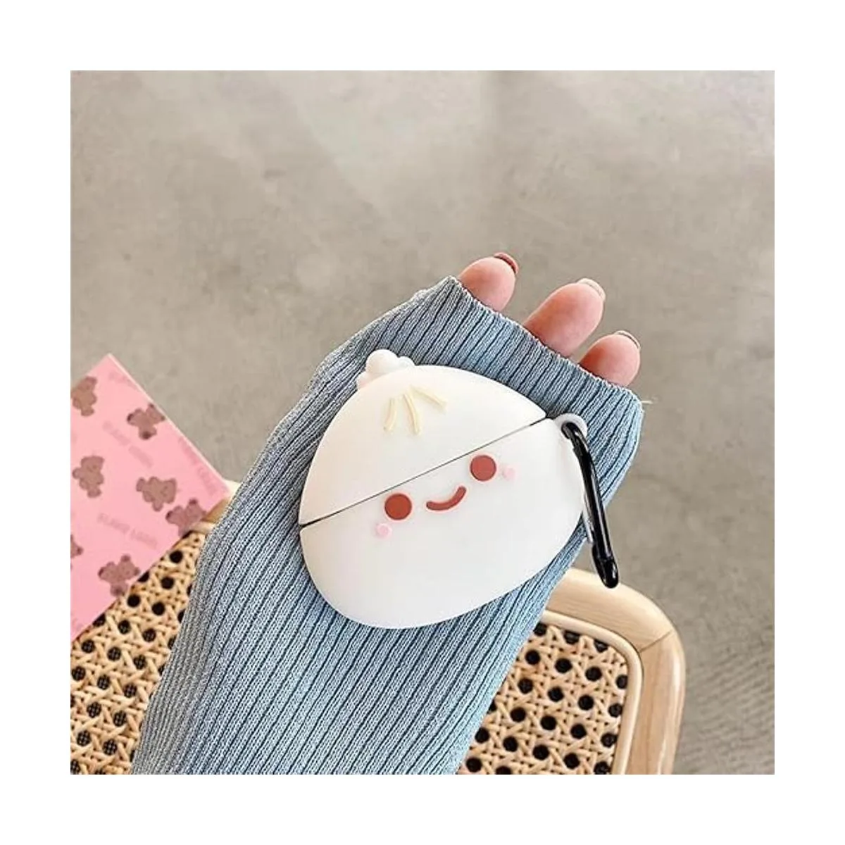 Bonita funda para AirPod Pro con llavero con diseño de cara de moño de relleno al vapor, funda protectora completa de silicona compatible con AirPods Pro para mujeres y niños