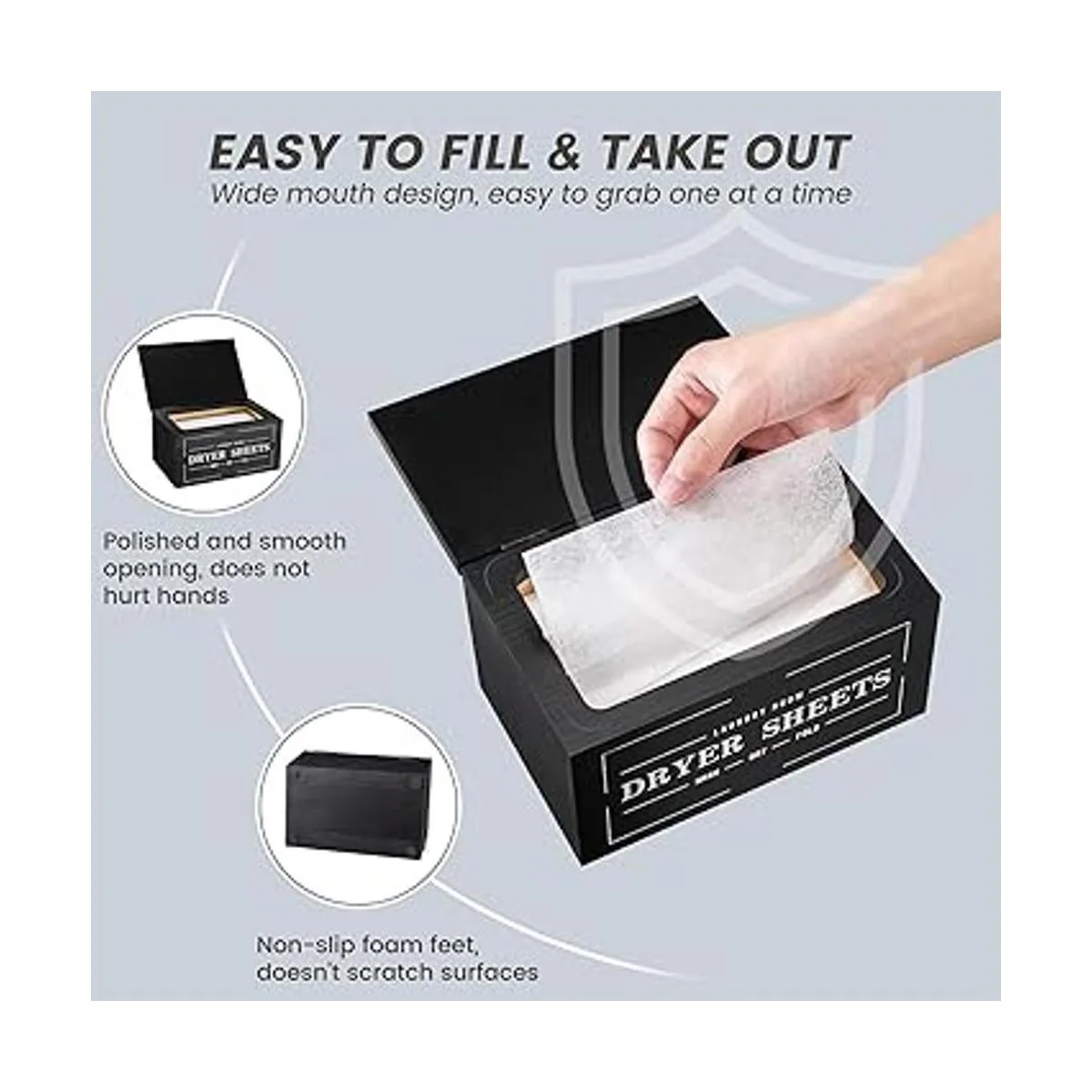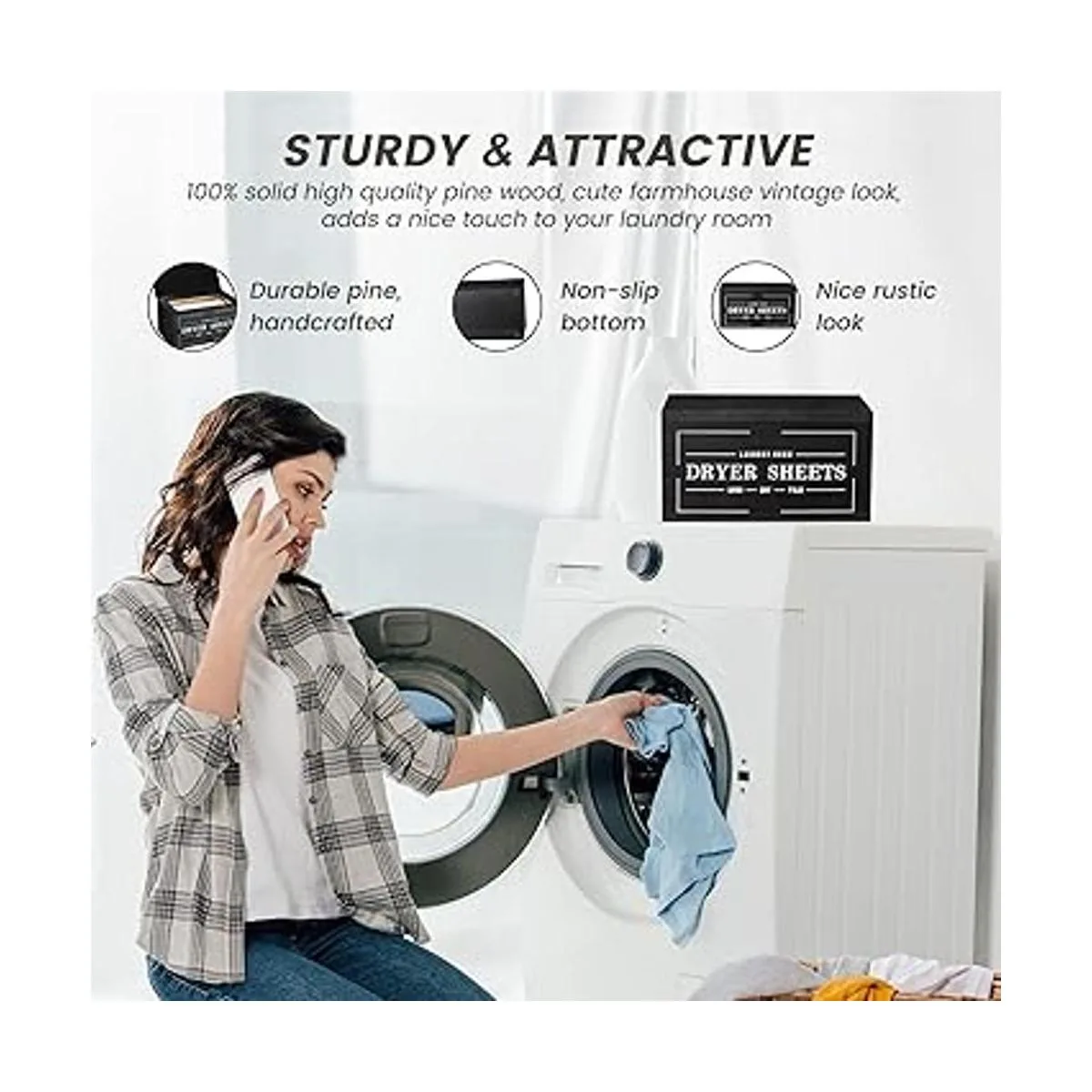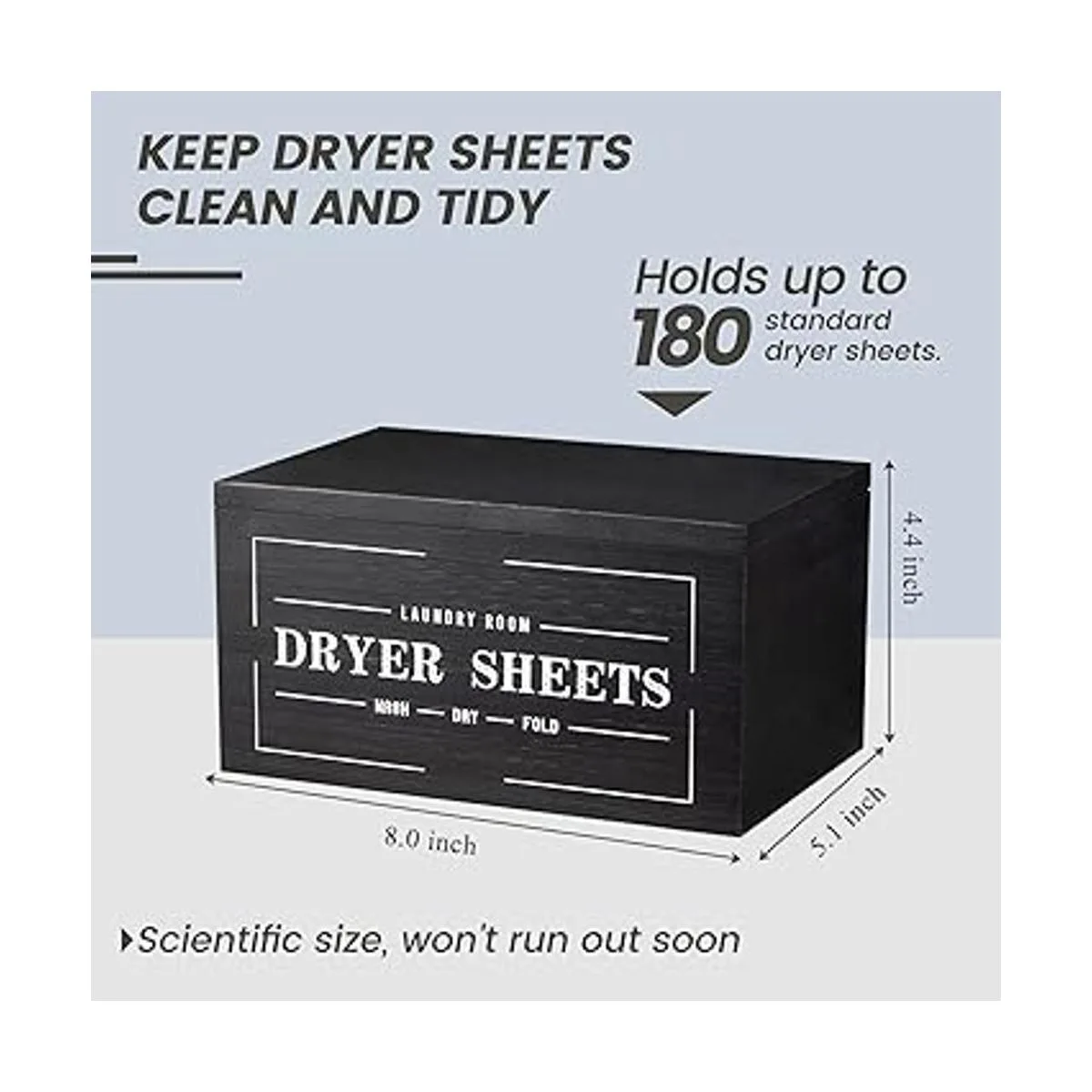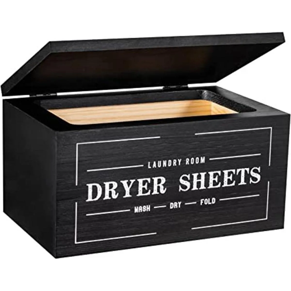 Bonito soporte para hojas de secadora con tapa, dispensador de hojas rústicas de granja, accesorios de decoración de cuarto de servicio, contenedor de hojas de secadora, dispensador de suavizante de tela para organización y almacenamiento de lavandería, color negro