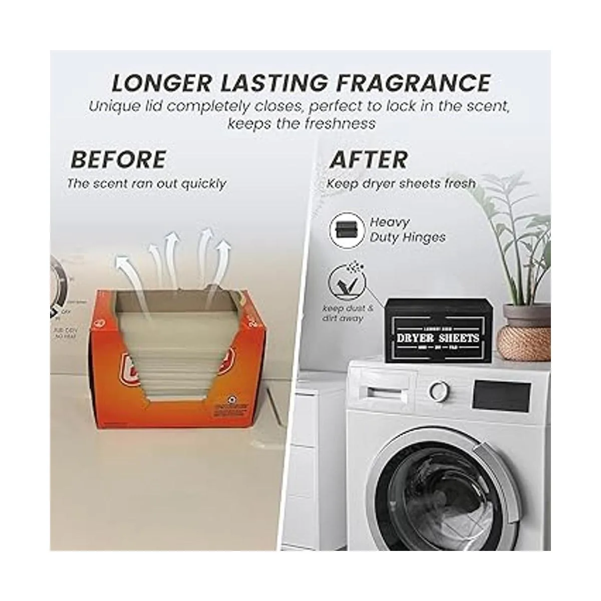 Tamaño científico: esta caja de sábanas para secadora puede contener hasta 180 hojas de secadora, se adapta a casi una caja grande de hojas de tela y hace que sea fácil acceso, no te quedes sin pronto. Mantiene las sábanas limpias y elegantes, combina con todas tus otras decoraciones y se ve genial, sorprende a la esposa/marido con una remodelación de lavandería.