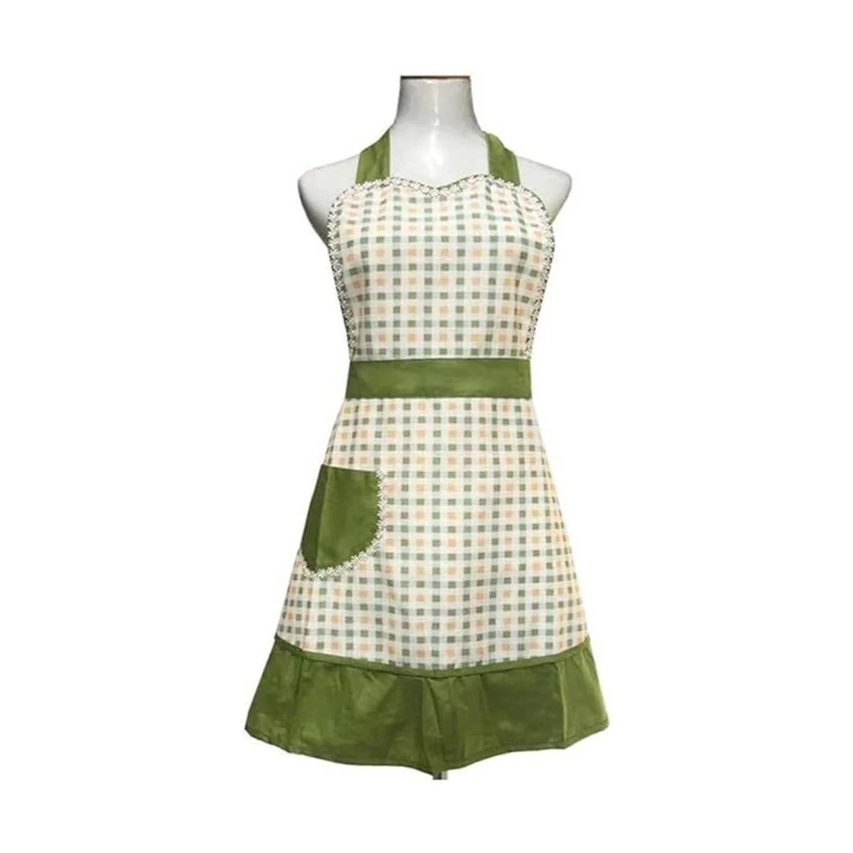 Bonito y único diseño para mujeres y niñas, delantal retro con bolsillo elegante para cocinar cocina, color verde