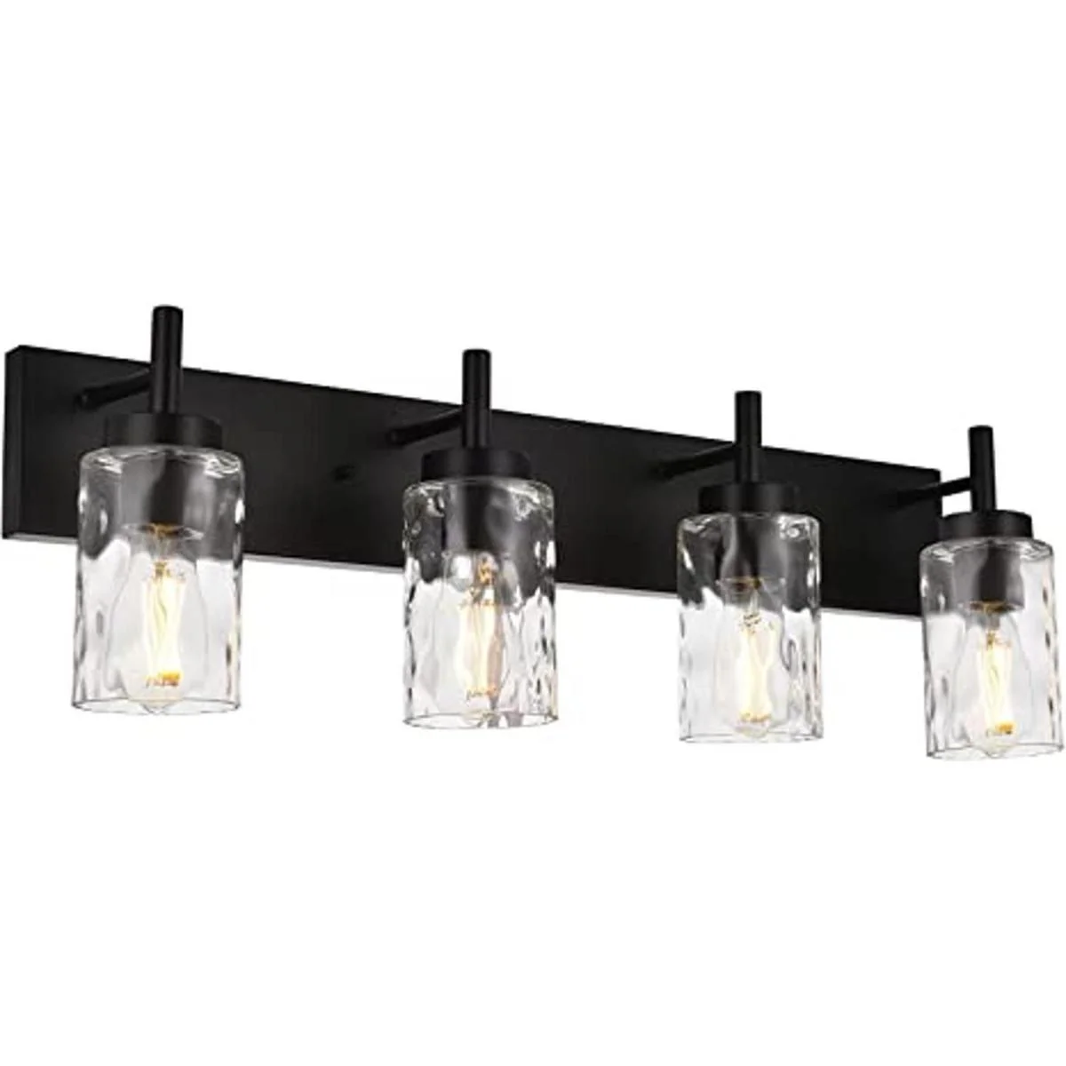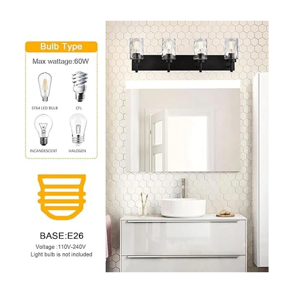 BONLICHT 4 luces de baño de pared con vidrio martillado transparente en acabado negro, modernos apliques de iluminación de pared sobre baño, espejo de maquillaje industrial para cocina, pasillo