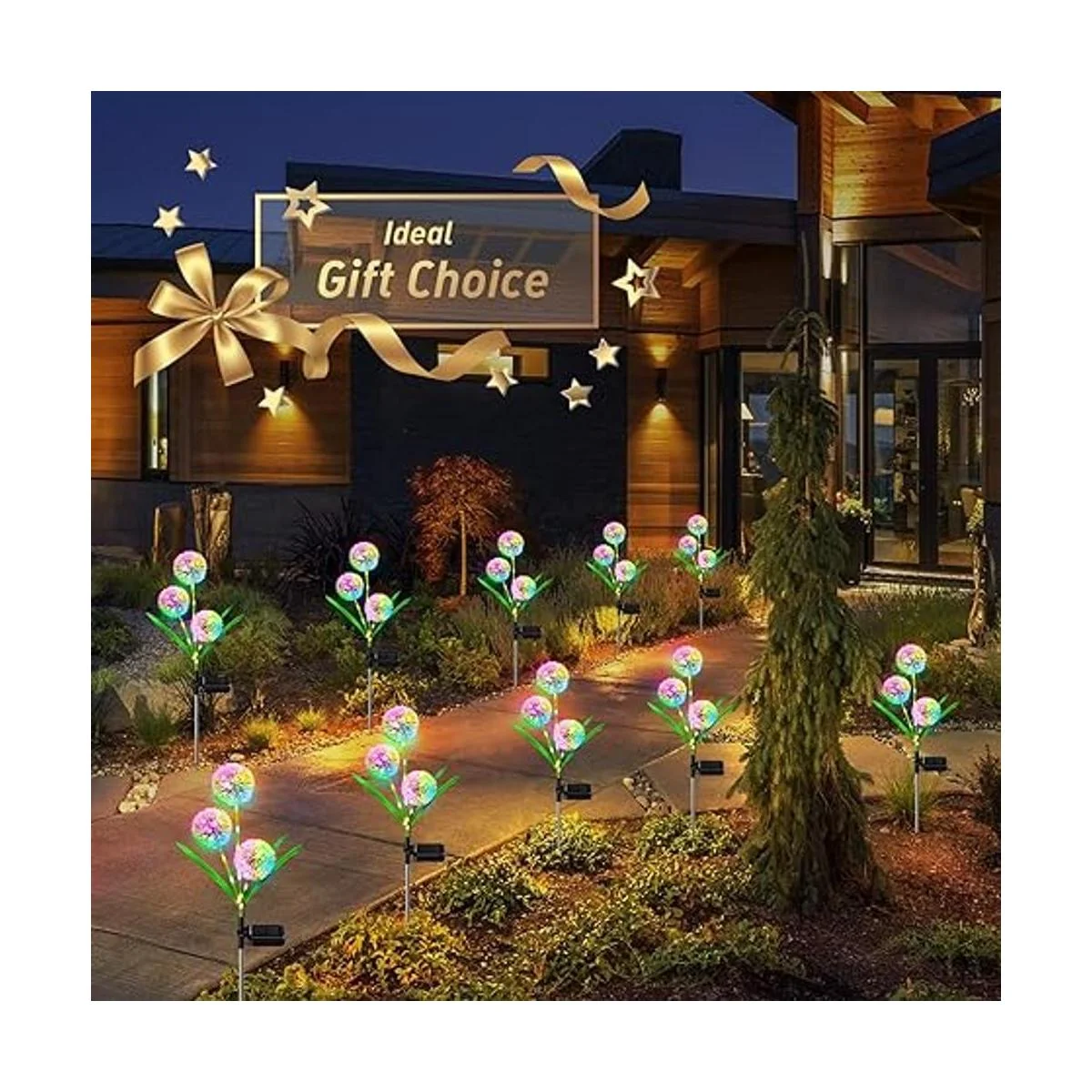 BONLION Luces solares para decoración de jardín al aire libre, paquete de 2 luces solares mejoradas de diente de león decorativas con 36 luces LED IP65 luces solares coloridas impermeables para exteriores para patio, césped, camino y boda
