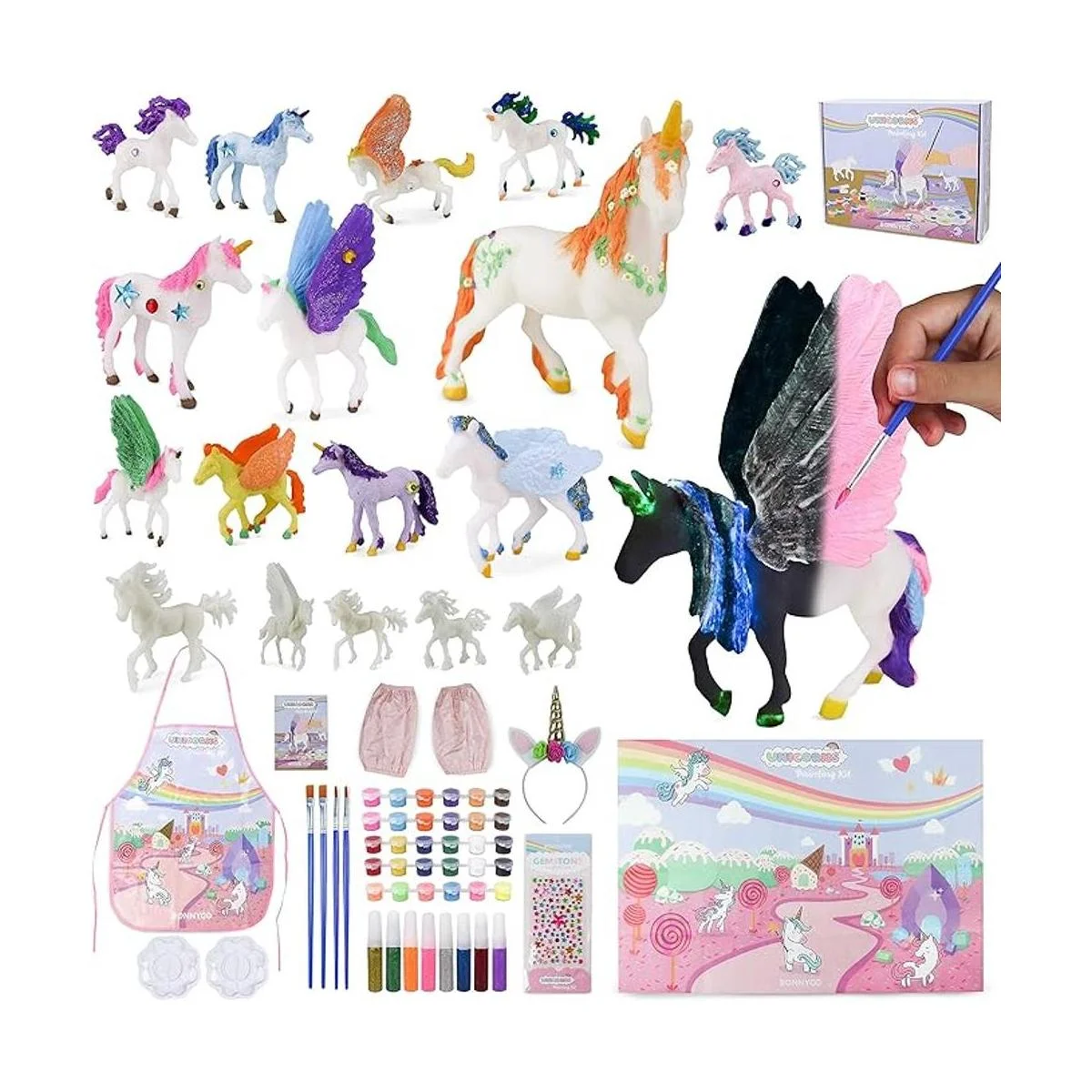 BONNYCO Kit de pintura de unicornios para niñas con 18 unicornios, pintura para niños con brillo en la oscuridad, juguetes para niñas de 3, 4, 5, 6, 7, 8, 9, 10 años, regalos para niñas para cumpleaños, Navidad, juguetes de unicornio