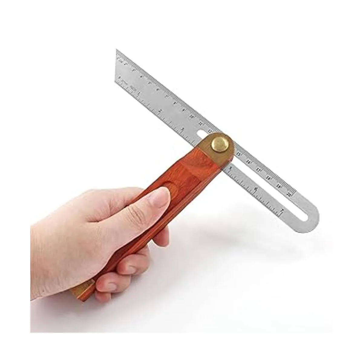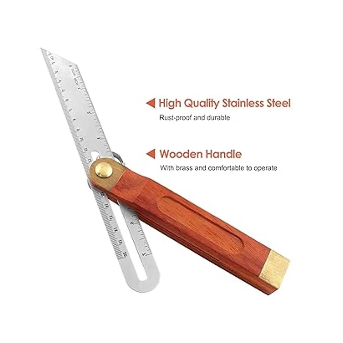 Bonsicoky Indicador deslizante de ángulo de bisel en T de 9 pulgadas, transportador de regla ajustable con mango de madera dura, marcas métricas