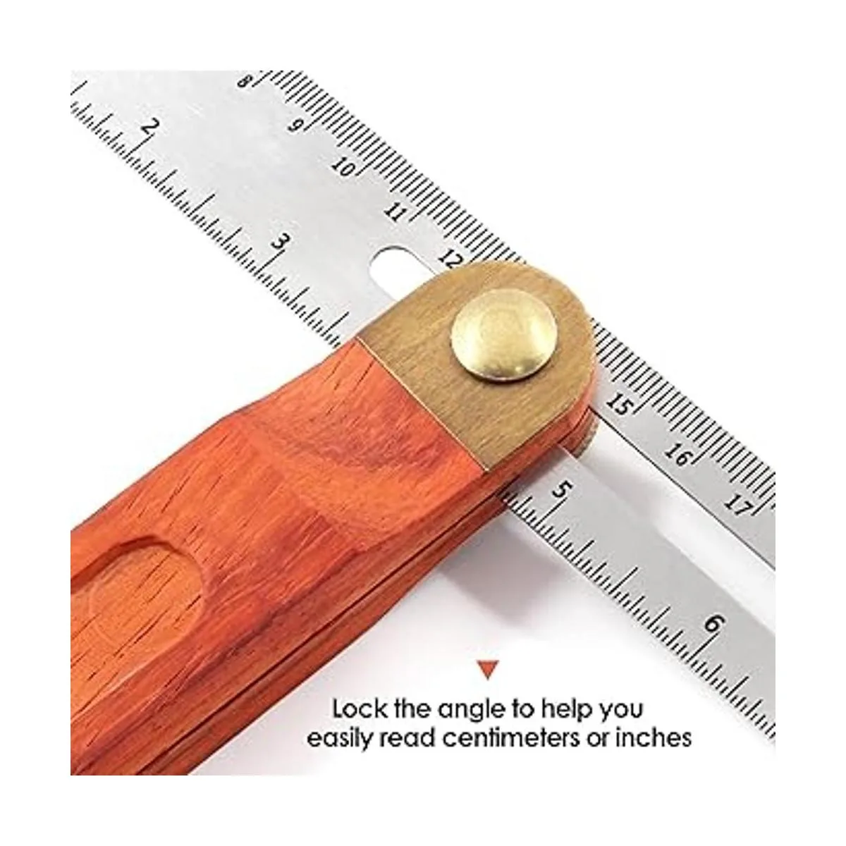 Material de alta calidad: la regla de ángulo deslizante TBisel está hecha de hoja de acero inoxidable de alta calidad y mango de madera con perilla de bloqueo de latón, la hoja es resistente al óxido y duradera, el mango de madera es cómodo de operar y seguro de usar.