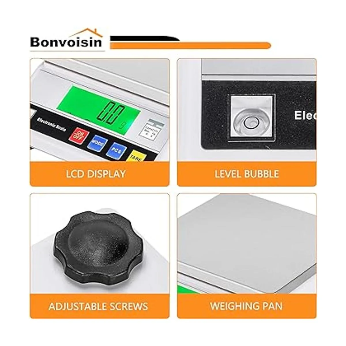 Bonvoisin Báscula de laboratorio de 22.0 lbs x 0.00 oz, balanza analítica digital, báscula electrónica precisa, certificación CE, balanza de laboratorio, escala de precisión, joyería escala de oro 22.0 lbs, 0.00 oz