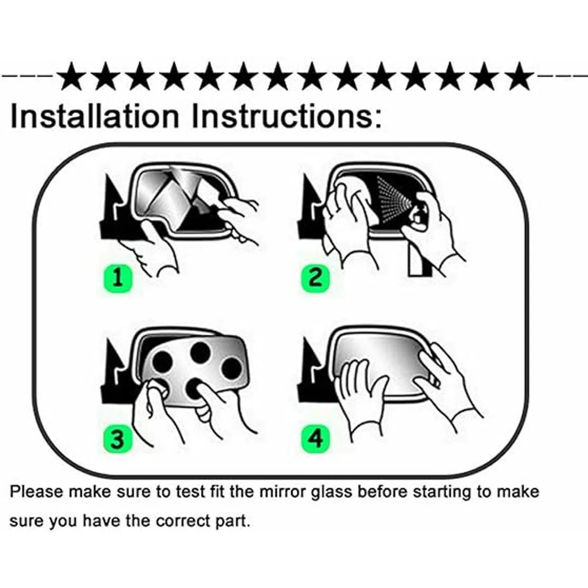 Contenido del producto: 1 espejo lateral izquierdo del conductor y almohadillas adhesivas sin placa trasera de plástico