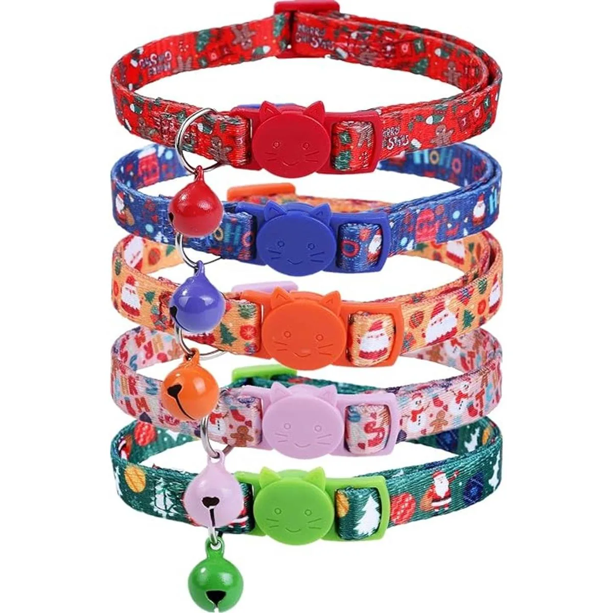 BoomBone Collar de Navidad para gato con campana, paquete de 5 collares seguros para cachorros
