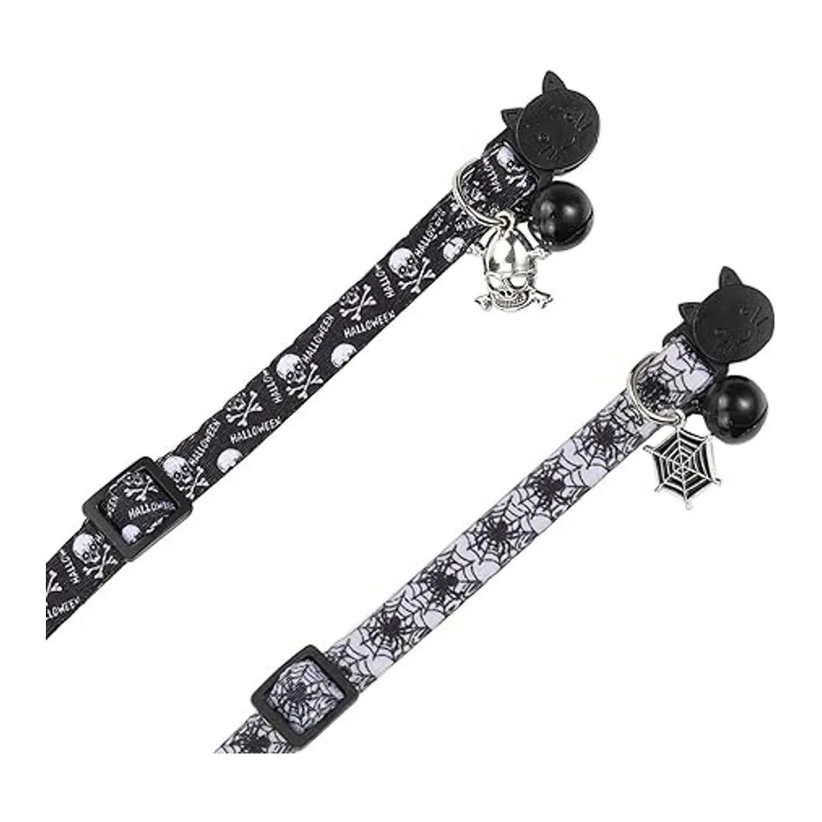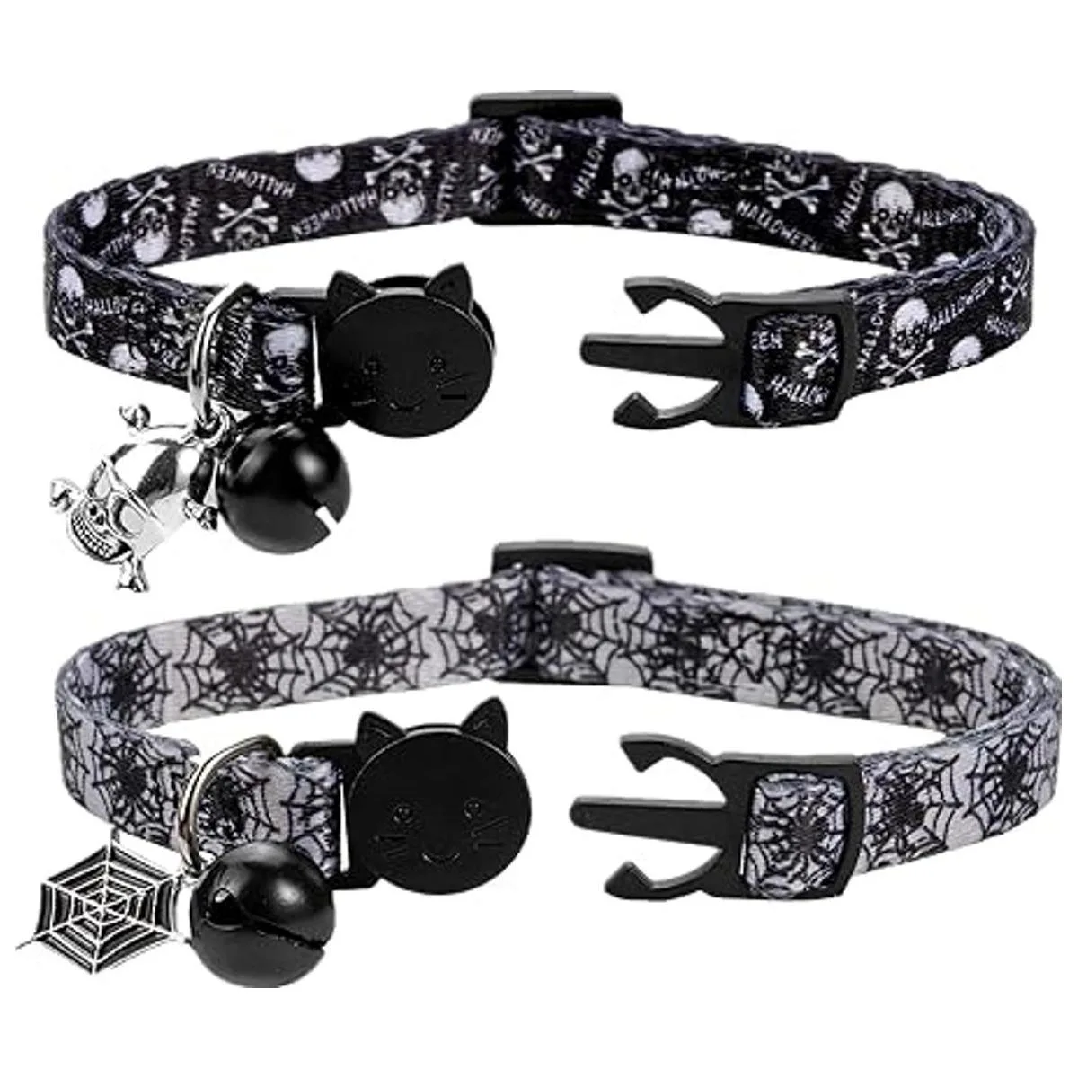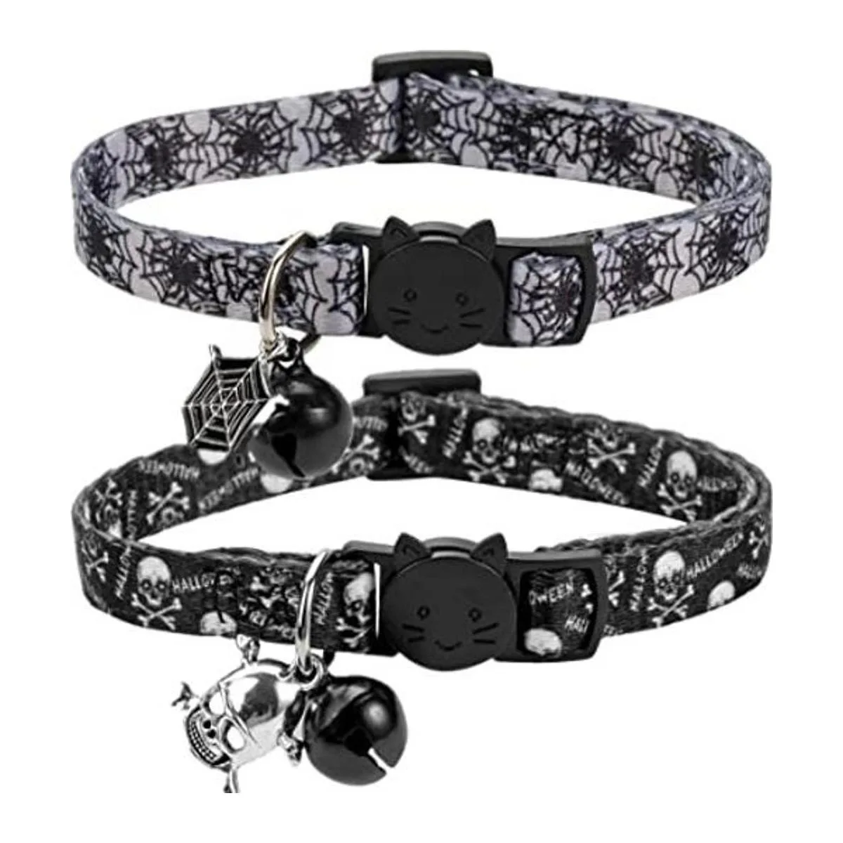 BoomBone Juego de 2 collares de gato de Halloween, collar de gato de calavera para perros pequeños, collar de gatito con campana