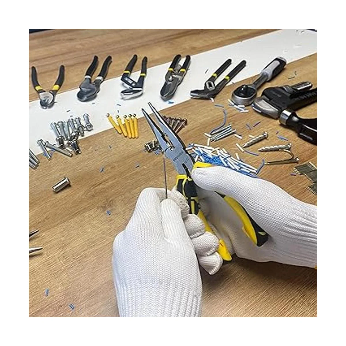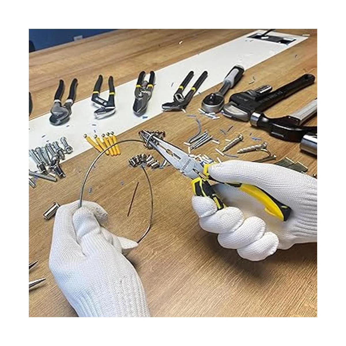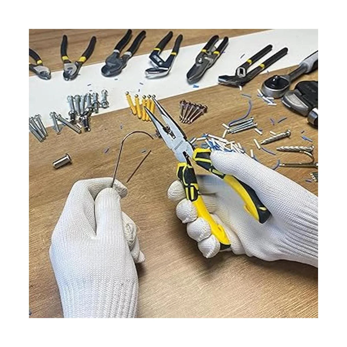 Material del producto: este juego de alicates de punta de aguja de 8 pulgadas está hecho de acero de alto carbono, y ha sido sometido a un tratamiento de endurecimiento de alta frecuencia para proporcionar mandíbulas y bordes de corte fuertes y duraderos, que no se volverán opaco.