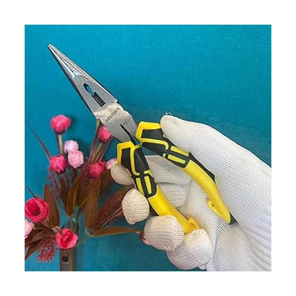 Diseño del producto: estos alicates de punta de aguja de 8 pulgadas con resorte tienen un excelente diseño de larga distancia, adecuados para trabajar en zonas estrechas.