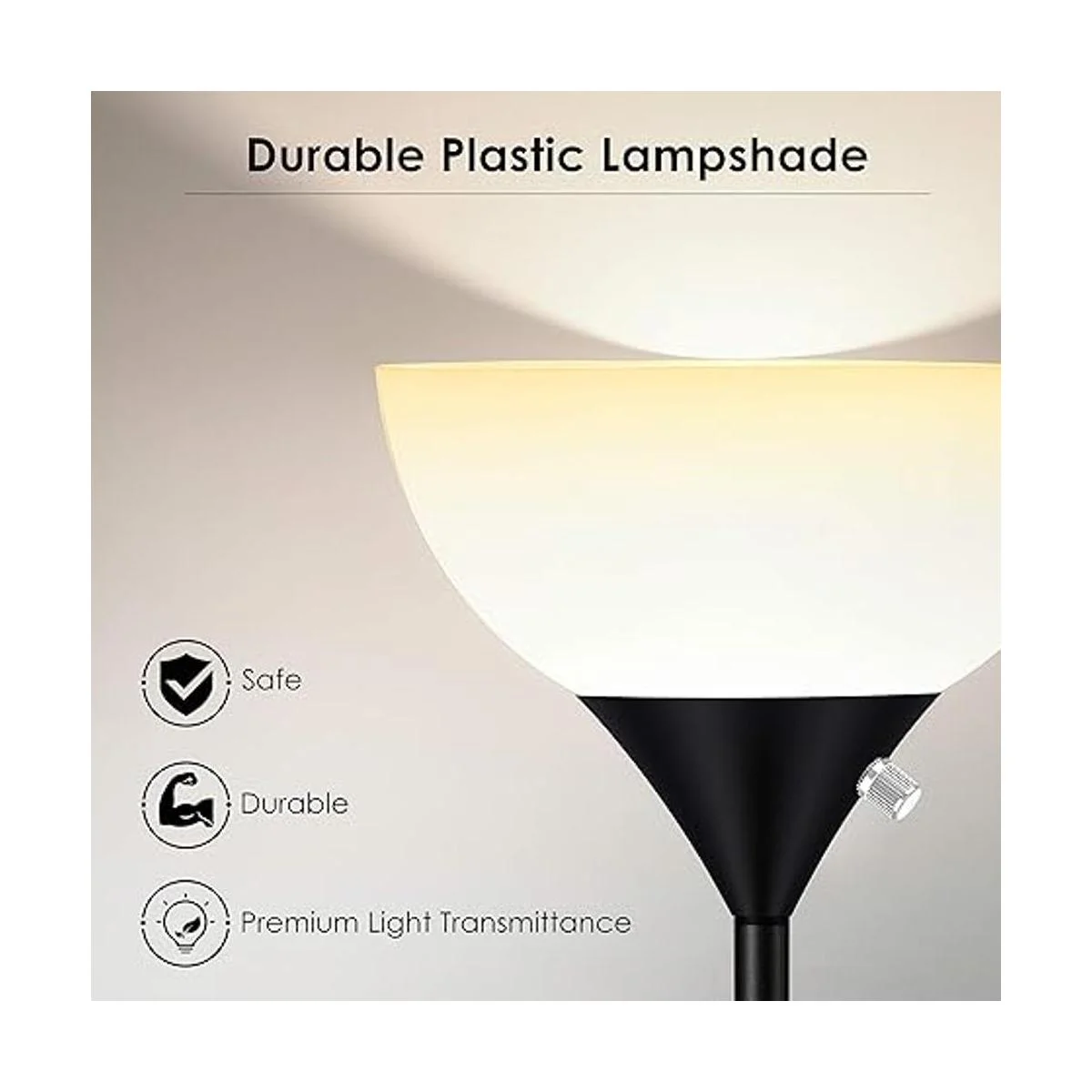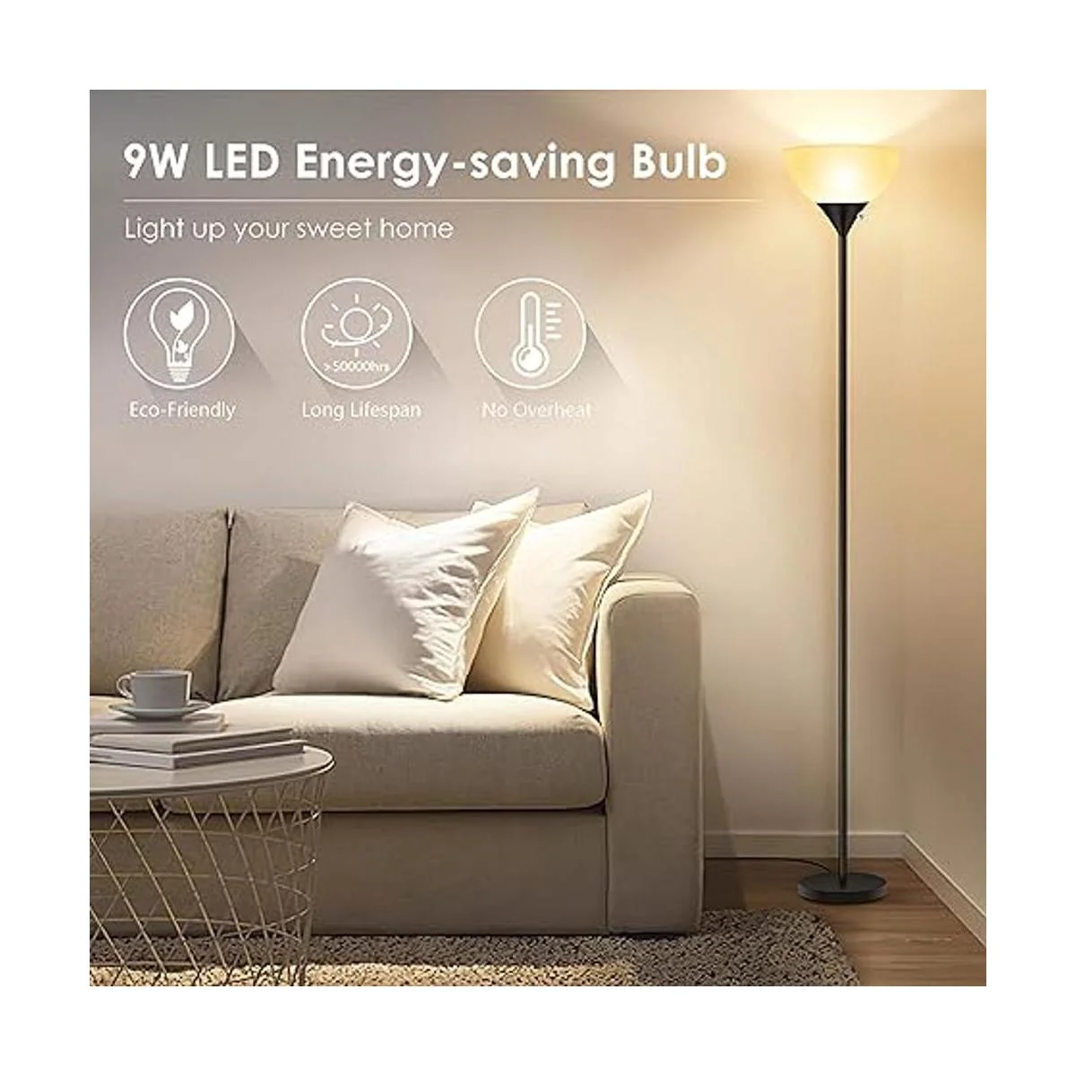 BoostArea Lámpara de pie, lámpara de pie, lámpara de pie LED de 9 W, ahorro de energía, 50.000 horas de larga vida útil, 3000 K, blanco cálido, cuidado de los ojos, lámparas de pie tipo torchiere para dormitorio, sala de estar, oficina, lectura, negro