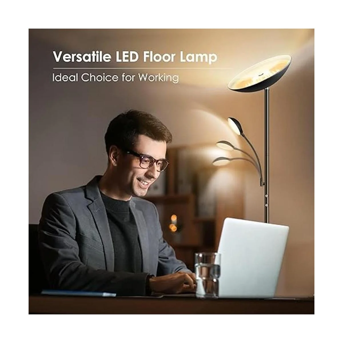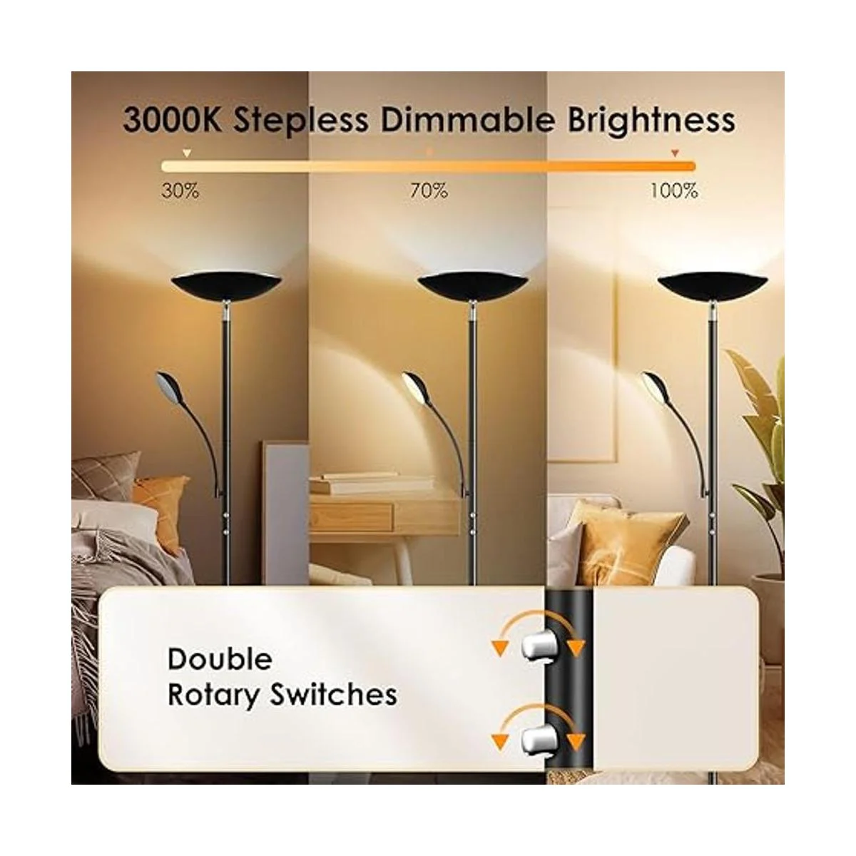 BoostArea Lámpara de pie, LED de 20 W2000 LM, lámpara de pie brillante con lámpara de lectura ajustable de 5 W, lámpara de pie regulable continua, 2 interruptores giratorios, lámparas de pie modernas para sala de estar, dormitorio, oficina