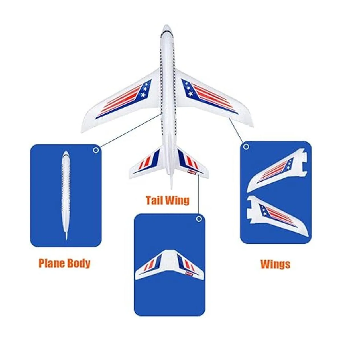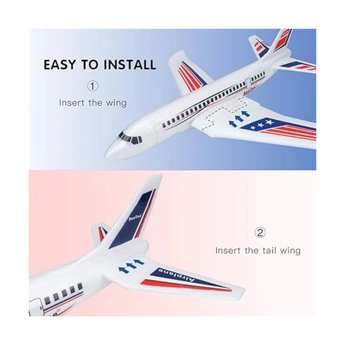 Material respetuoso con el medio ambiente, fácil de instalar: estos juguetes de avión están hechos de material EPP de alto polímero, peso ligero, buena flexibilidad, resistencia al impacto. Producto probado seguro para niños. No dañará a tus hijos, incluso si el avión lo golpea durante el aterrizaje. Fácil de montar: no necesita batería, simplemente inserta el ala y la cola en el lugar correcto, se te permitirá disfrutar del juego inmediatamente.