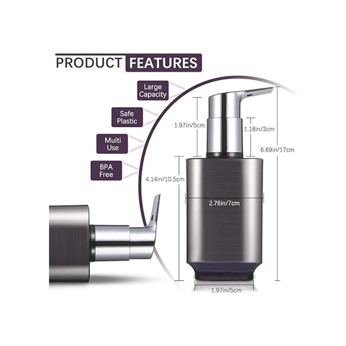 Detalles del tamaño: el dispensador de jabón de bomba mide 6.7 pulgadas de altura, 2 pulgadas de diámetro. Cada dispensador de jabón tiene capacidad para 10 onzas de líquido. De espacio podrás llenar un montón de líquido en este resistente dispensador. Embellece tu baño o cocina, ahorra dinero rellenando este dispensador de jabón decorativo. Consejos de mantenimiento: Utiliza un paño de algodón para limpiar el dispensador de jabón con agua y limpia ligeramente, evita el uso de limpiador corrosivo o ácido