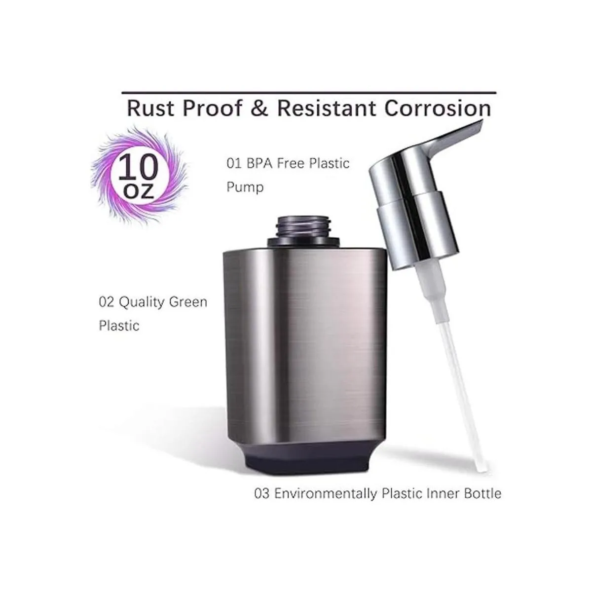 Boperzi Paquete de 2 dispensadores de jabón líquido recargable a prueba de óxido, dispensador de jabón para manos y platos, a prueba de fugas, bomba de plástico para cocina, baño, 10 onzas