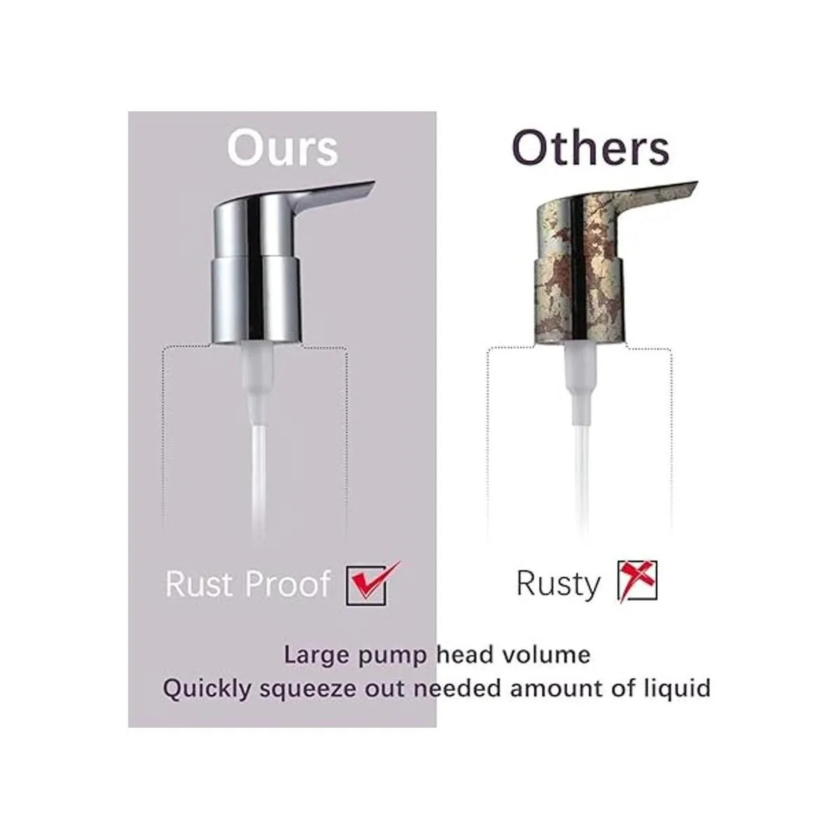 A prueba de fugas: cada bomba proporciona la cantidad óptima de jabón, crea jabón líquido de lujo con un simple empuje y no necesitas bombear varias veces para obtener suficiente jabón para lavarte las manos. El émbolo superior es más ancho y se puede presionar más fácilmente. Empujar la cabeza puede lograr buenos resultados, el efecto de sellado en la tapa es muy bueno, y no se filtrará si el tarro se gira boca abajo. La bomba no se atasca ni se aglupa con el producto, y no se obstruye fácilmente