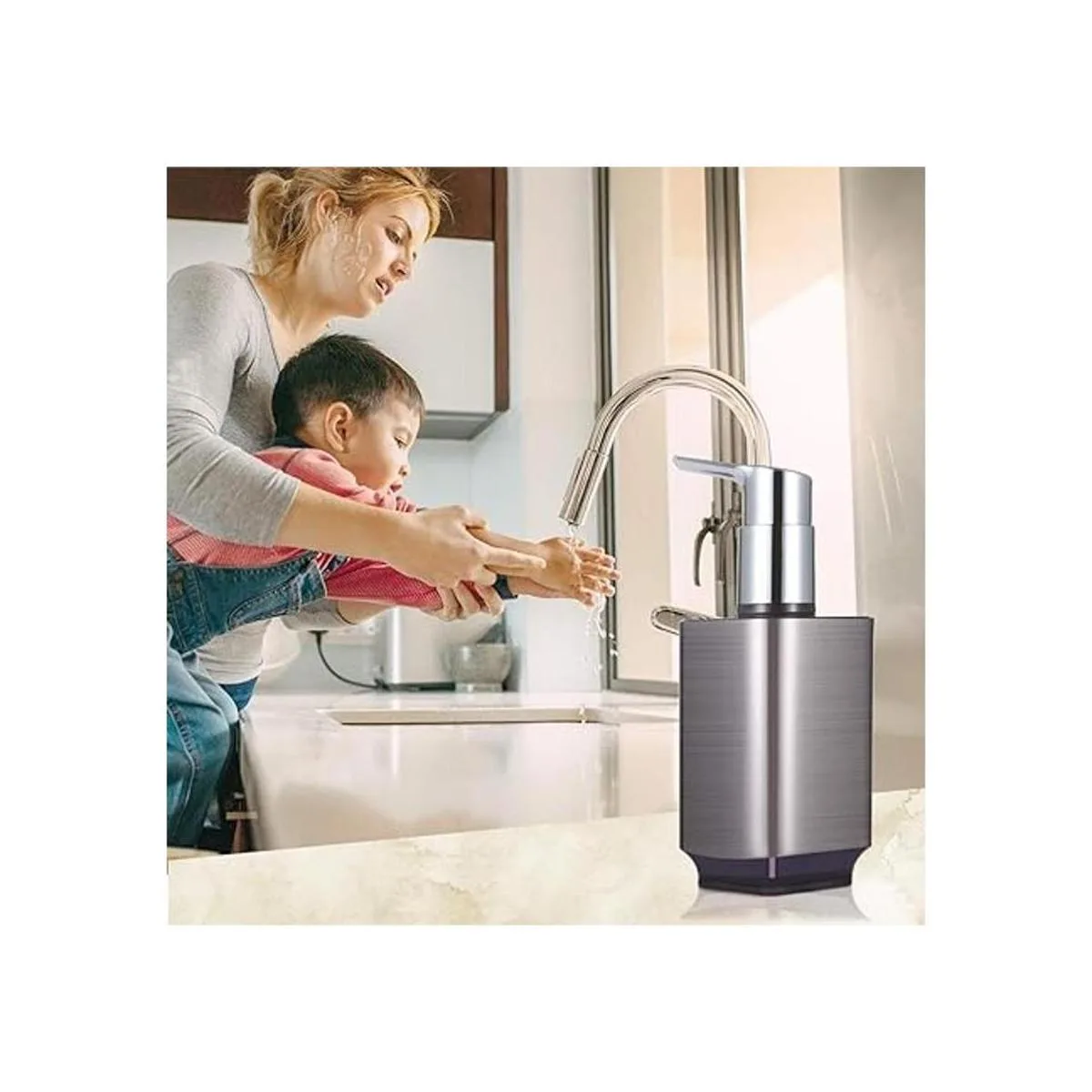 Diseño moderno: este dispensador de jabón de manos combina vintage con lo moderno. El diseño contemporáneo de dos tonos crea un aspecto impactante, el color negro mate complementa la plata, se adapta a la decoración de tu hogar. La etiqueta de personalidad añade un toque de estilo al dispensador de loción. Este dispensador de jabón líquido se verá genial en tu hogar, ya sea que estés decorando una granja, una cabina de campo o condominio de la ciudad
