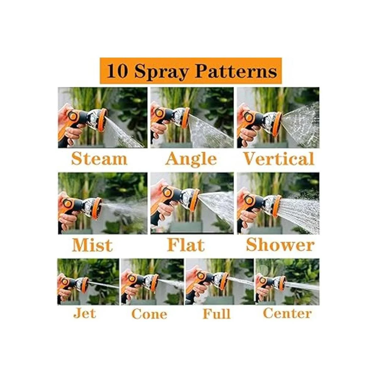 10 patrones de rociador ajustables: la boquilla de manguera de alta presión tiene 10 patrones de rociador de manguera ajustables, y te permite utilizar boquilla de manguera de alta presión para regar el césped de tu patio, jardinería y lavar tus coches y mascotas.