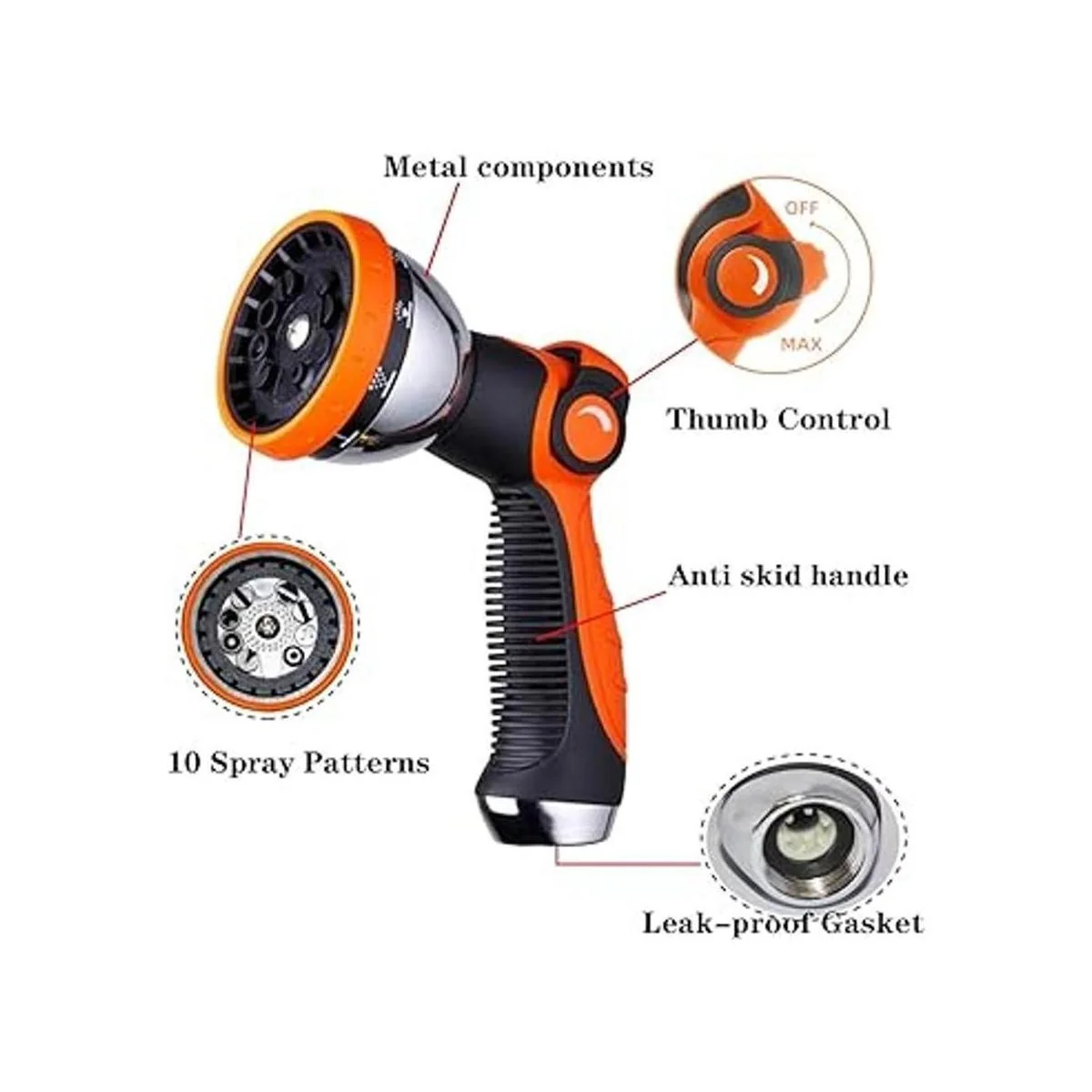 Boquilla de rociador para manguera de jardín, 10 patrones de riego de metal, control de pulgar, válvula de apagado de alta presión, rociador para riego de plantas, lavado de coches, limpieza, ducha y mascotas