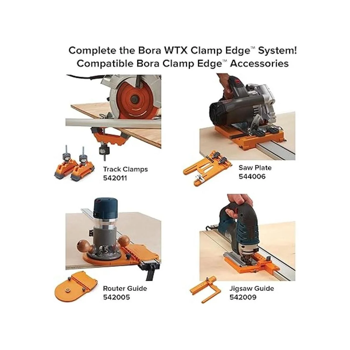 Un accesorio ideal para carpintería, hecho para usar con nuestra gama de bordes Bora Clamp para ayudarte a lograr cortes rectos con tu rompecabezas