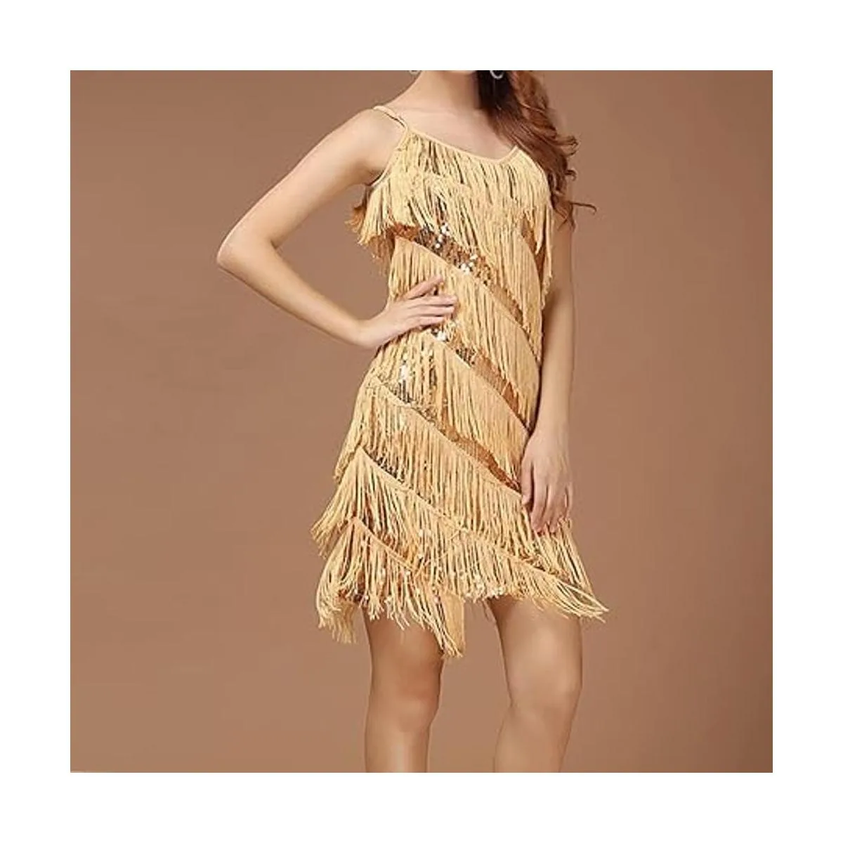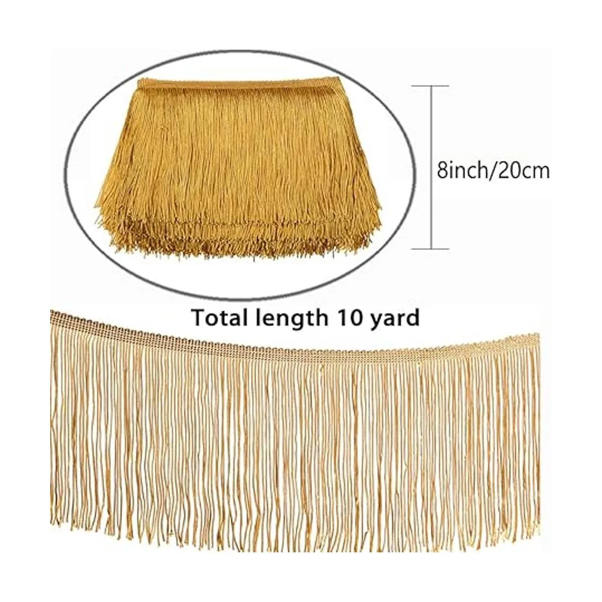 Borde de flecos dorados de 8 pulgadas de ancho de 10 yardas de largo con borla para manualidades, ropa y decoración de vestidos (dorado)