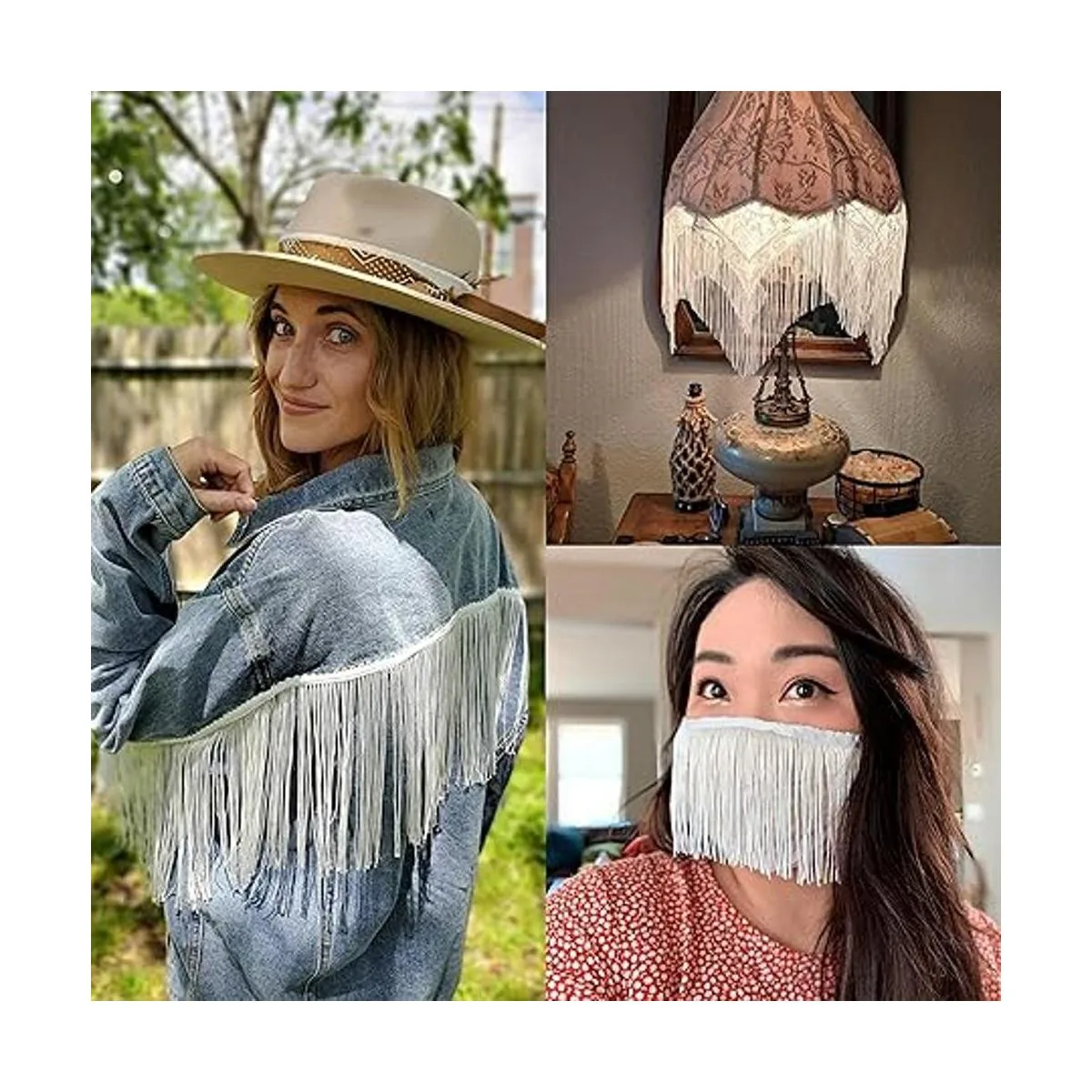 Cómodo y práctico: los bordes de los cordones con flecos están fijados con hilo blanco, por lo que las borlas son limpias y flexibles, y el encaje con flecos está diseñado con la característica de buena resistencia, fácil de llevar y almacenar en la vida diaria.