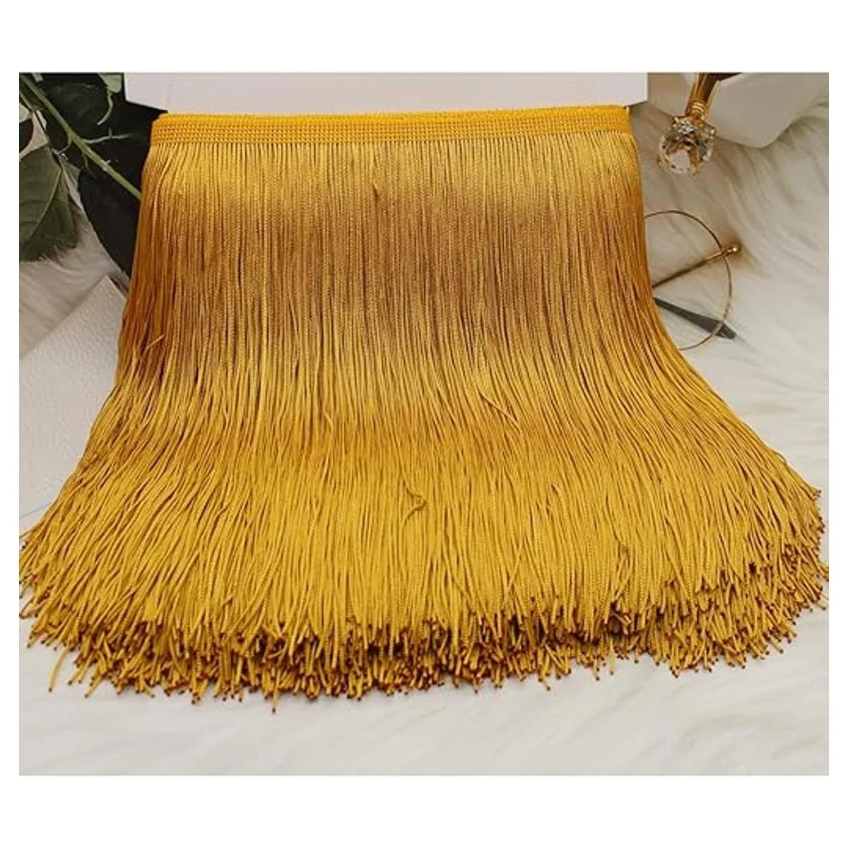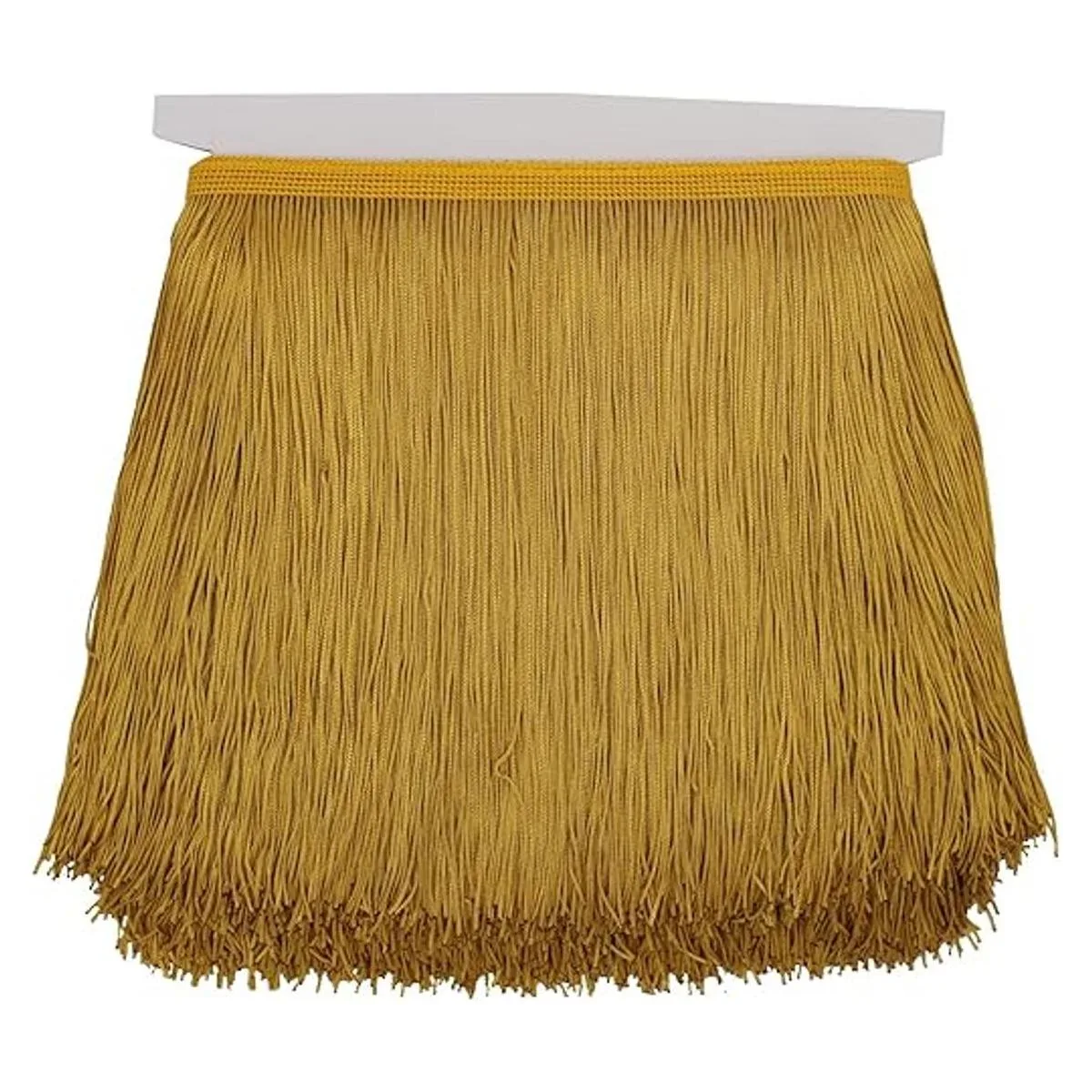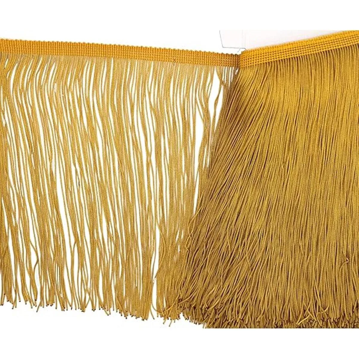 Borde de flecos dorados de 8 pulgadas de ancho de 10 yardas de largo con borla para manualidades, ropa y decoración de vestidos dorado