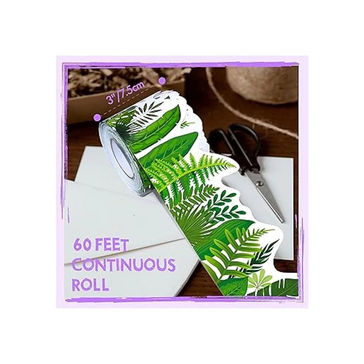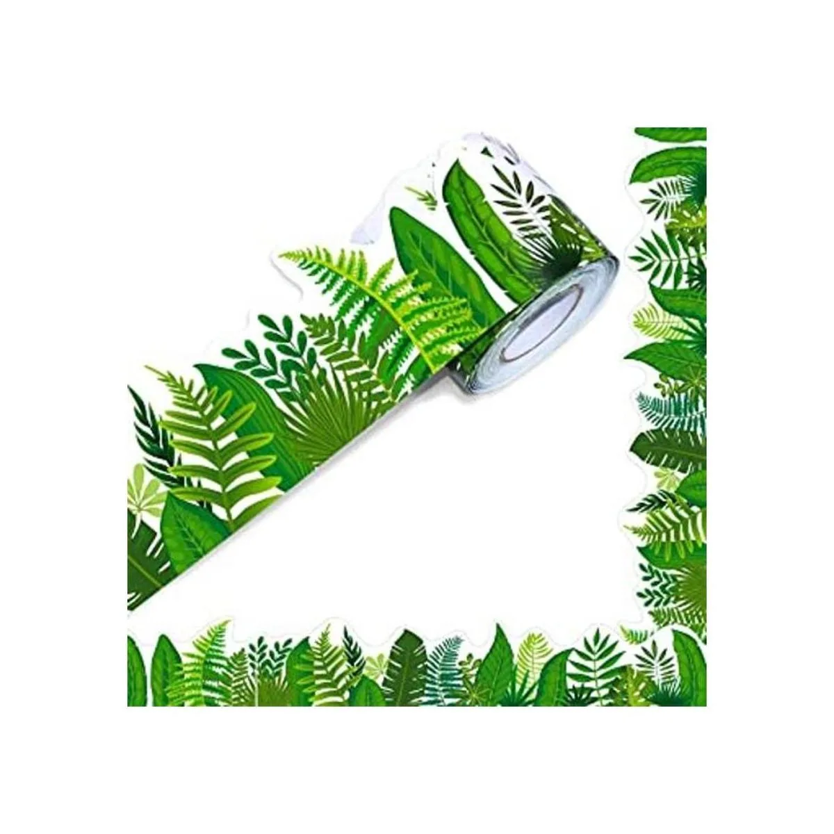 Bordes para tablón de anuncios de 60 pies, borde recto enrollado con patrones de hojas tropicales para escuela, aula y oficinas