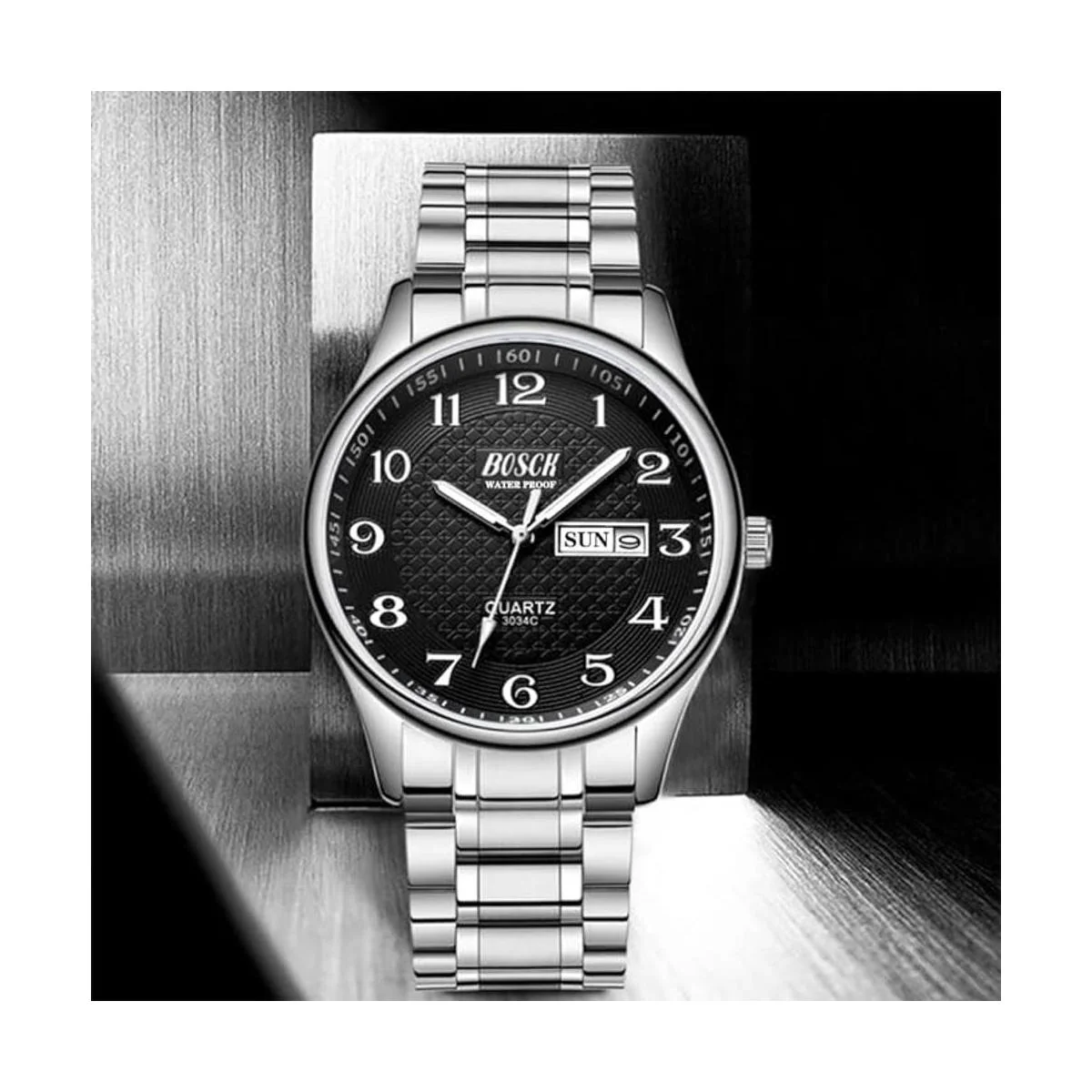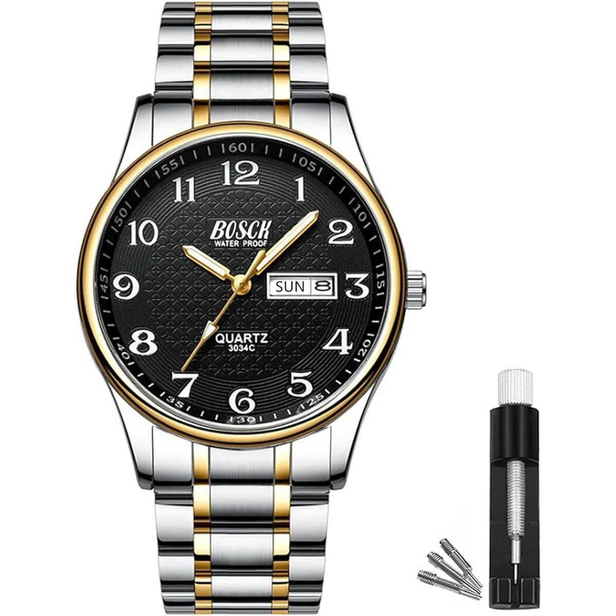 BOSCK Analog Mens Watch,40mm Easy Read Auto Date and Day Stainless Steel Business Watch for Men,30M Waterproof Sports Mens Wrist Watches