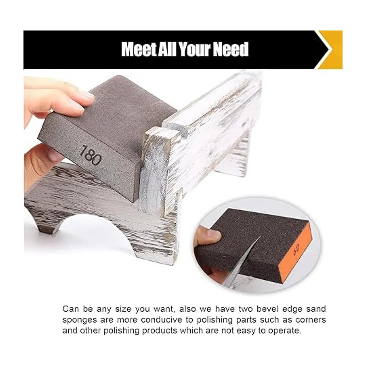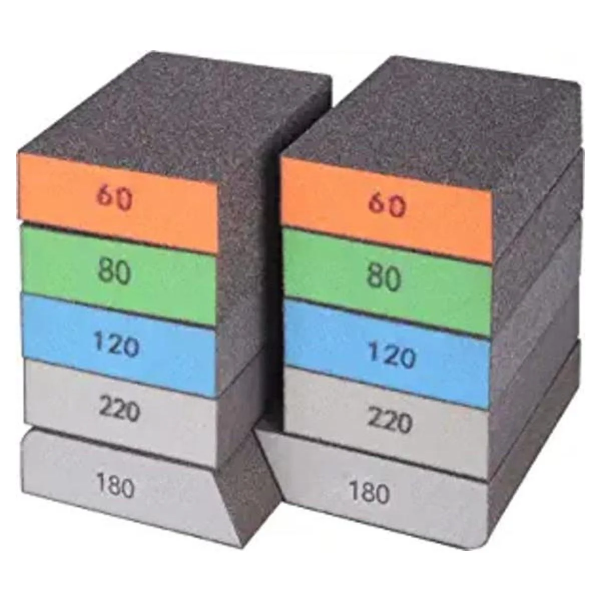 Bloques de lijado de grano surtido: 10 esponjas de lijado de 4 grados de grosor a superfino surtido de especificaciones en grano 60/80/120/180/220, cada grano tiene 2 piezas, y la esponja de lijado de un solo ángulo tiene 2 piezas en grano 180. Se puede cortar en tamaños adecuados para tus necesidades.