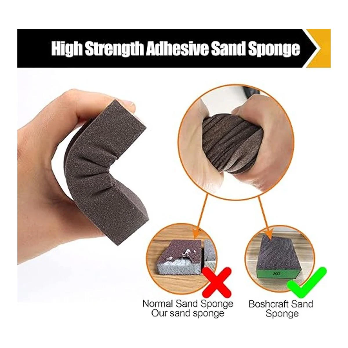 Esponja de lijado sin obstrucciones: la esponja de alta densidad es muy elástica, flexible y duradera sin desgarros. La resistencia del bloque de lijado es excelente, la plasticidad es fuerte y no es fácil de romper. La superficie no se agrieta y la arena no se caerá.