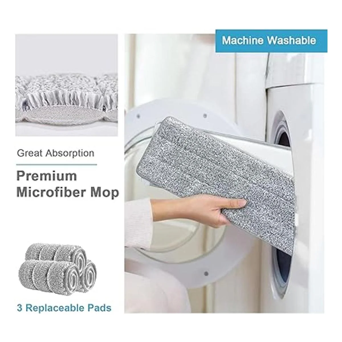 Almohadillas de microfibra para fregona: el juego de fregona y cubo con escurridor tiene tres almohadillas de microfibra con excelente absorción de agua que lo hace perfecto para la limpieza en seco y húmedo. Puedes lavar las almohadillas de fregona en la lavadora mientras mantiene una limpieza eficaz.