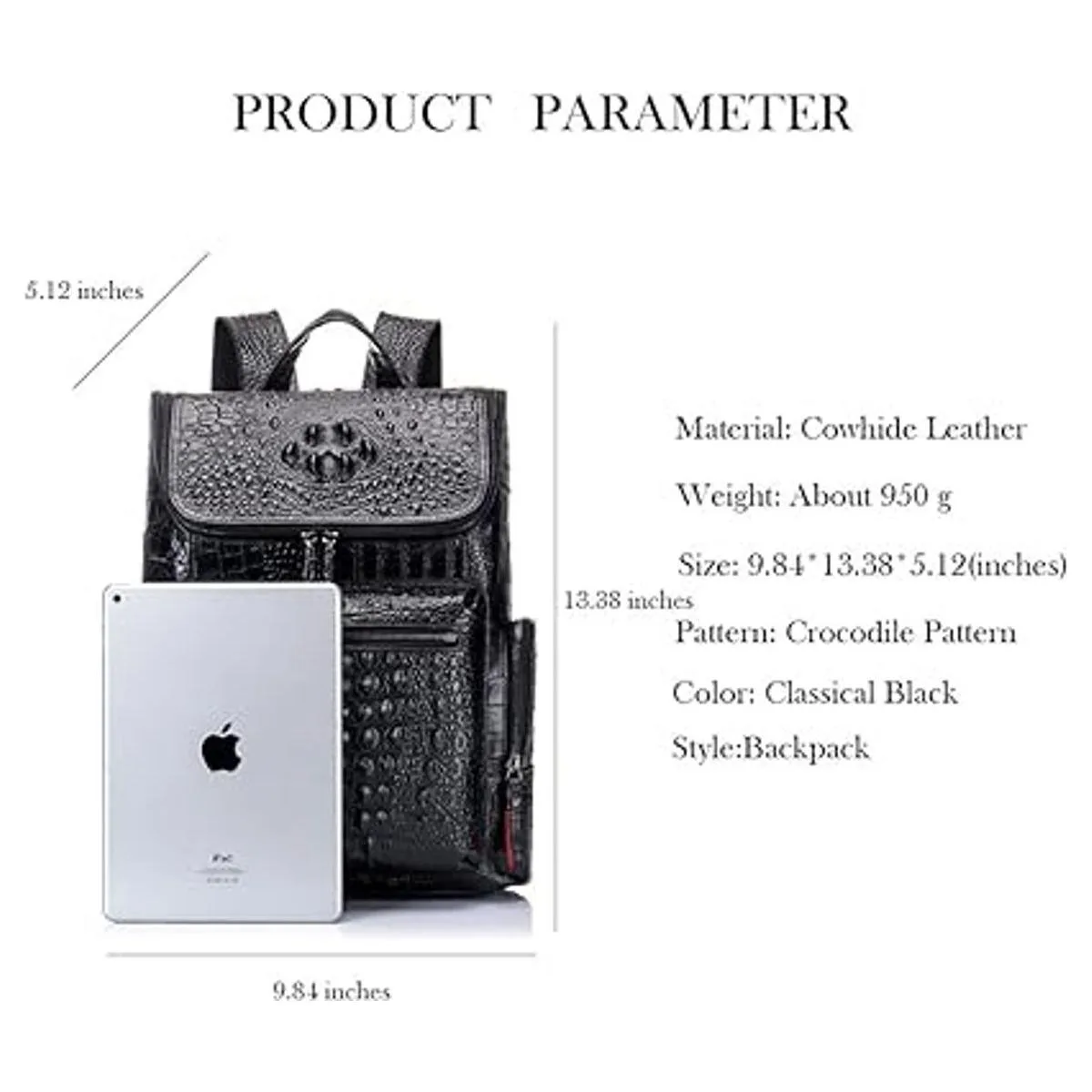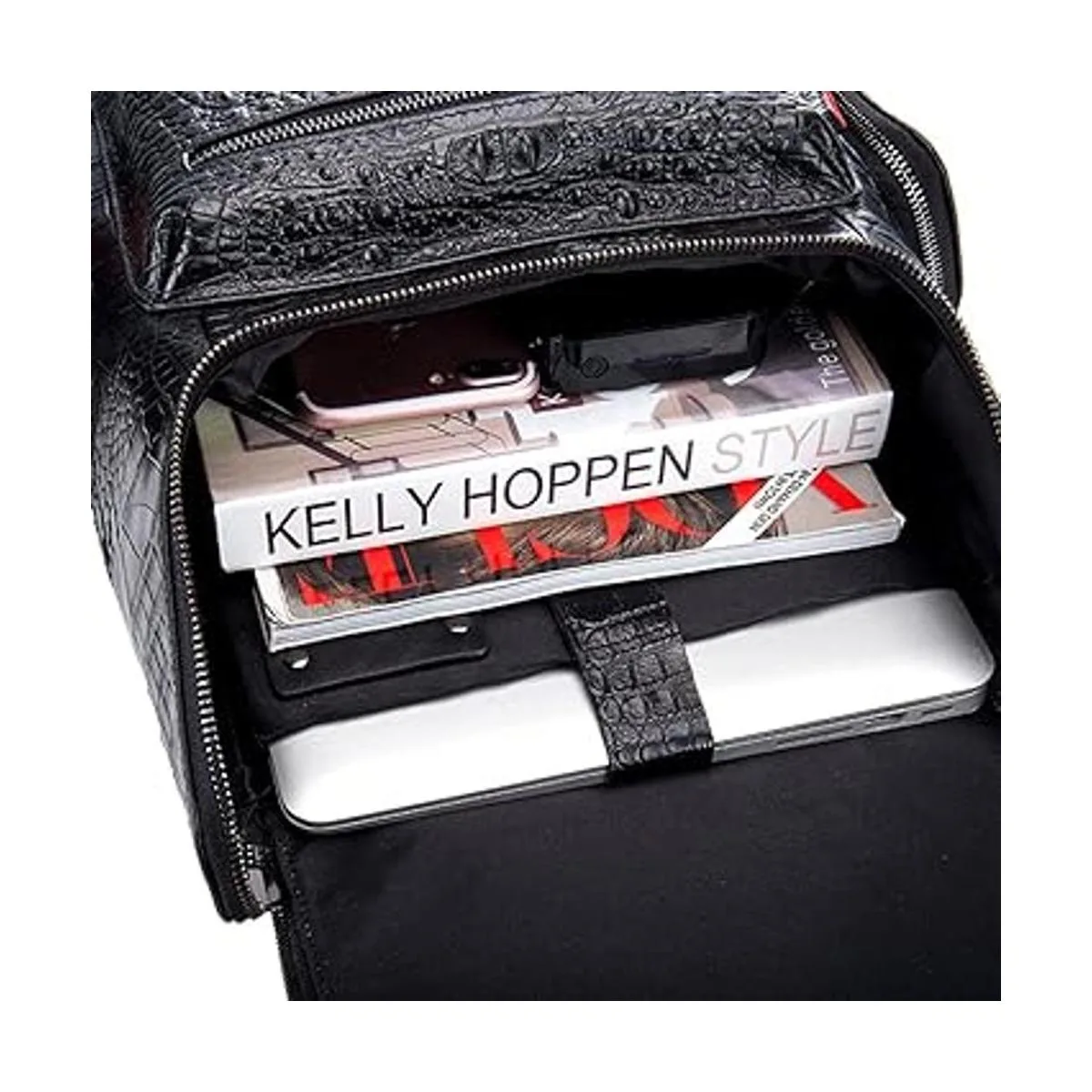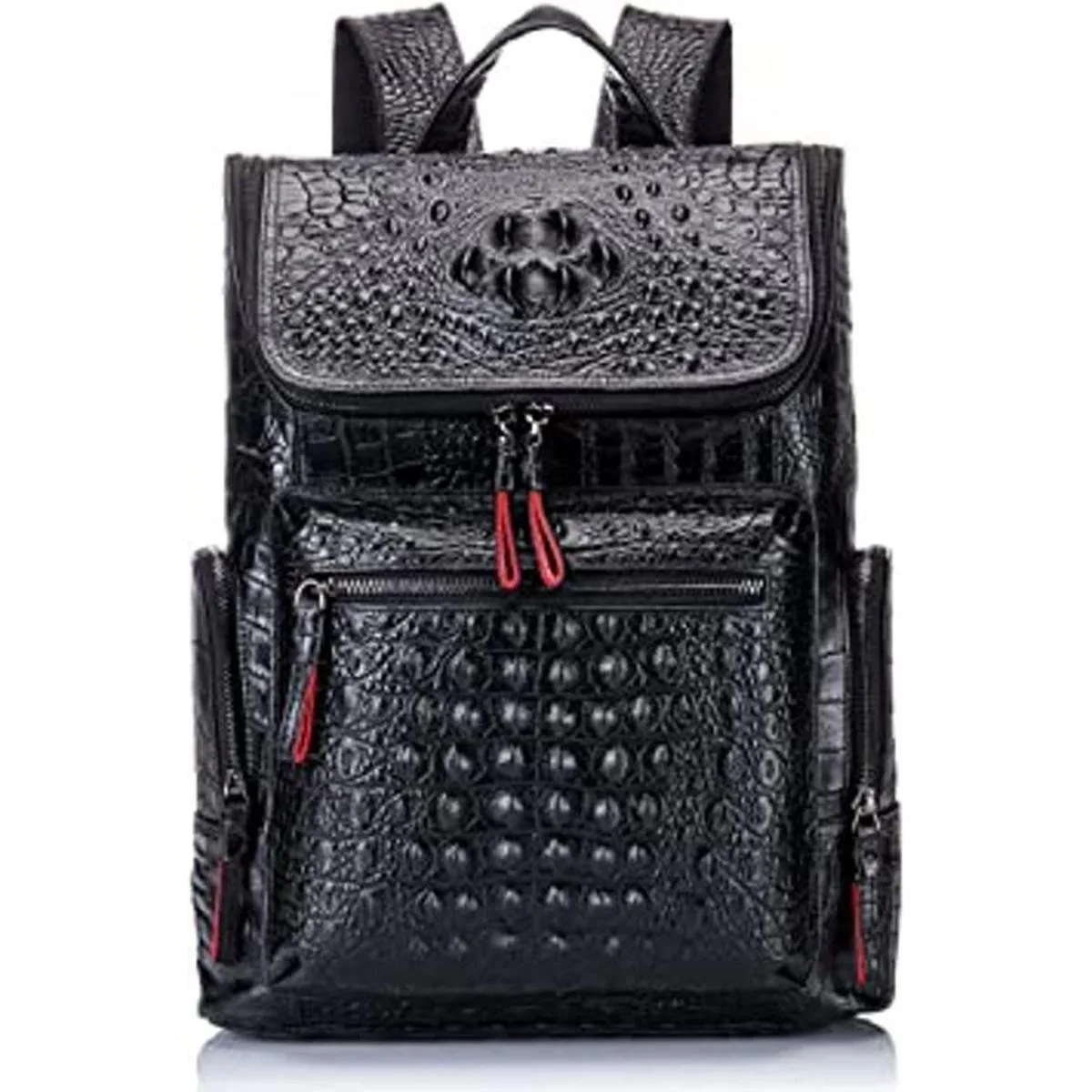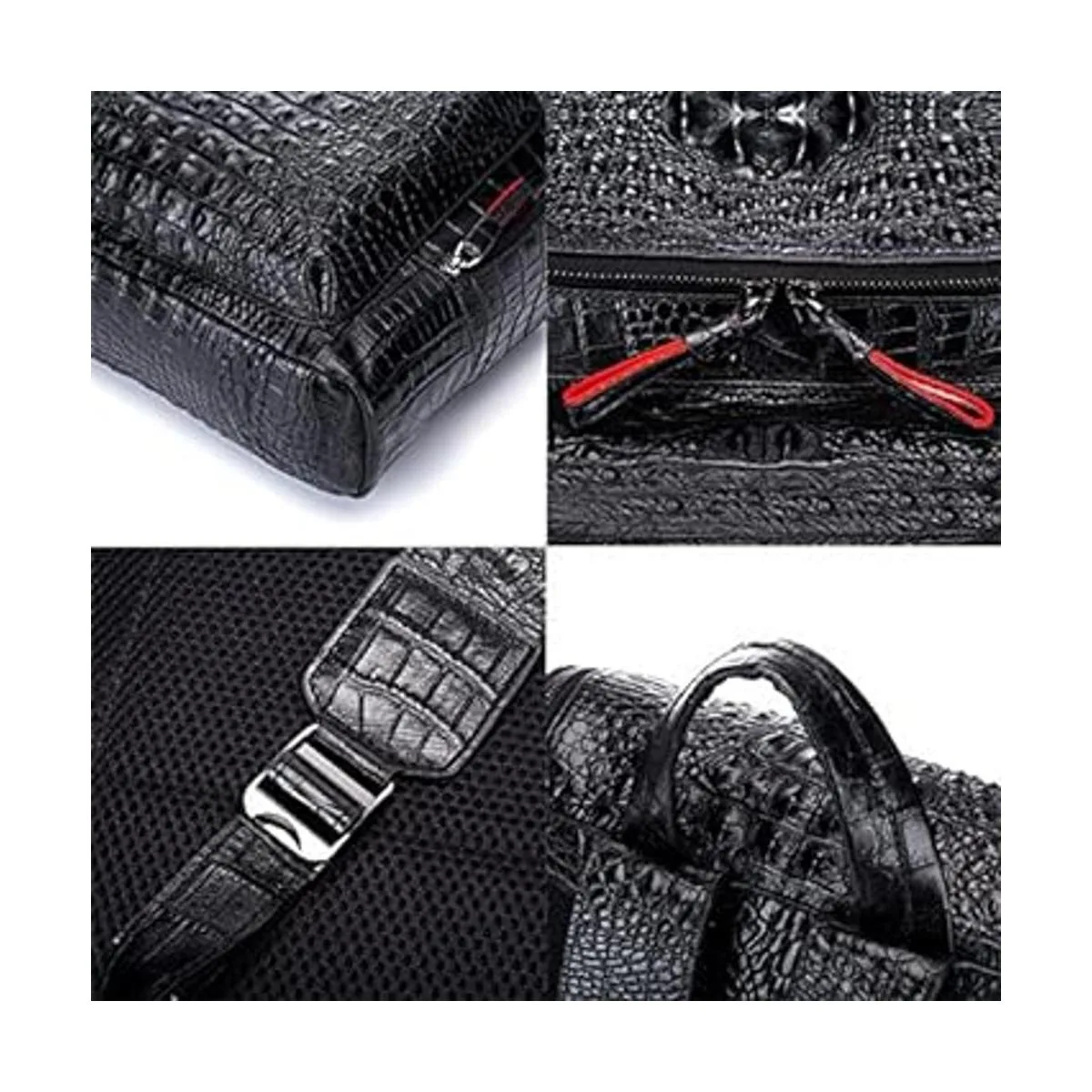 Boshiho Mochila de cuero real para laptop, bolsa de viaje de moda para hombres, patrón de cocodrilo S