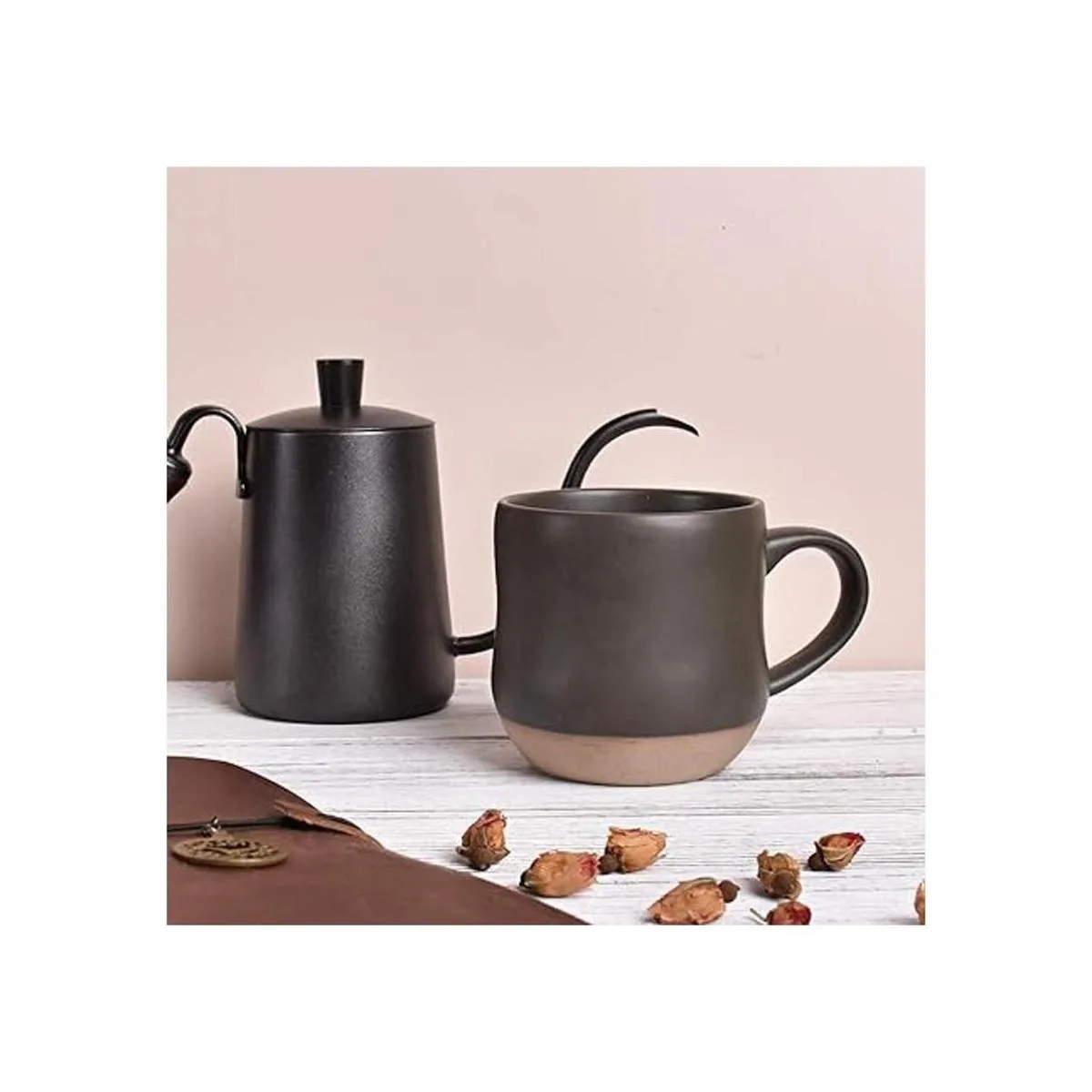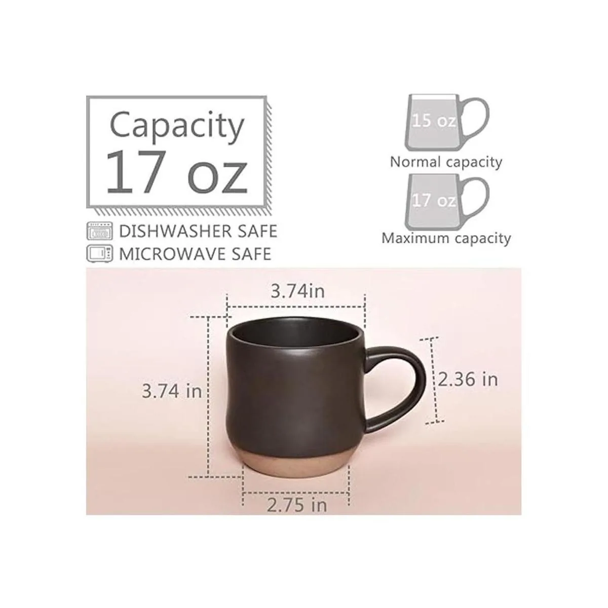 Bosmarlin Taza de café grande de gres, taza de té grande para oficina y hogar, 17 onzas, apta para lavavajillas y microondas, 1 unidad negro, 1