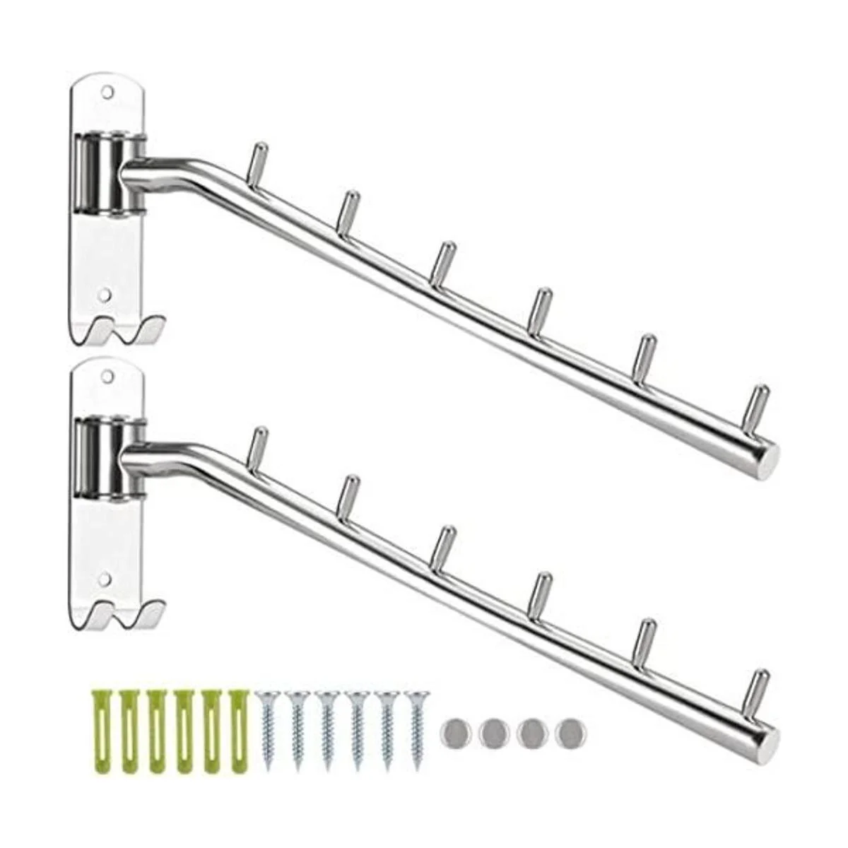 Bosszi 2 ganchos de acero inoxidable para ropa con brazo, cepillado