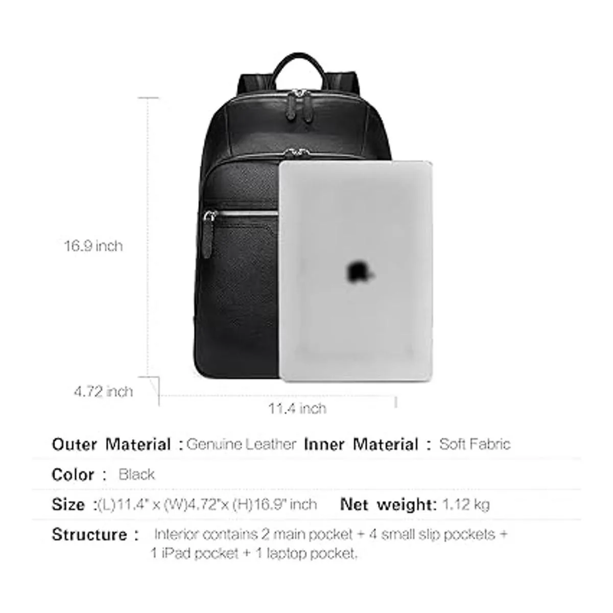 BOSTANTEN Mochila de cuero para hombre de 15,6 pulgadas portátil mochila de viaje universidad bolsa negro