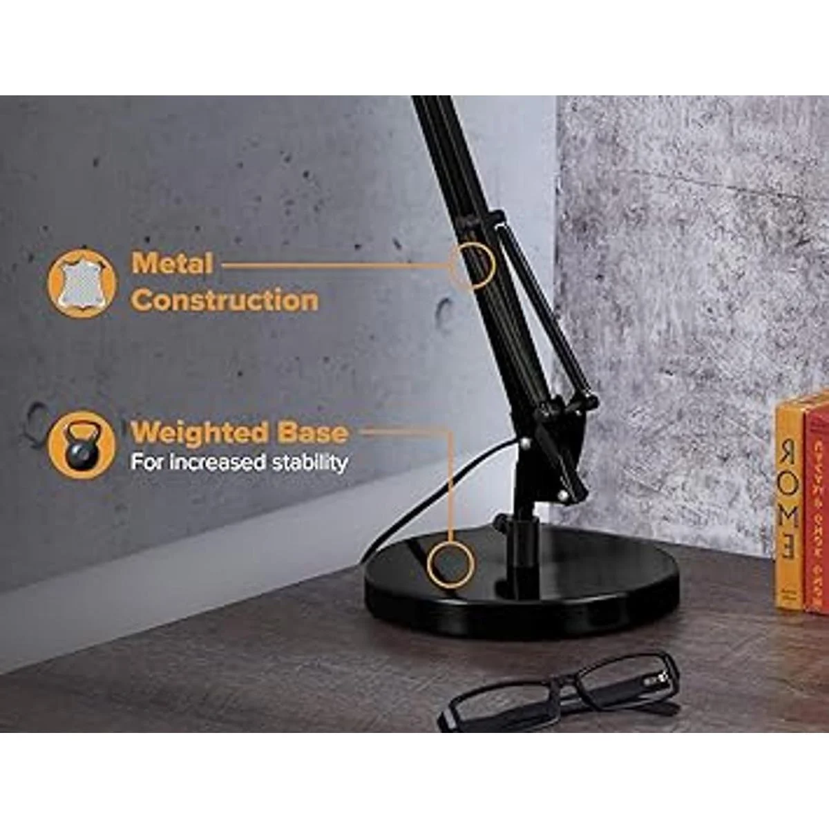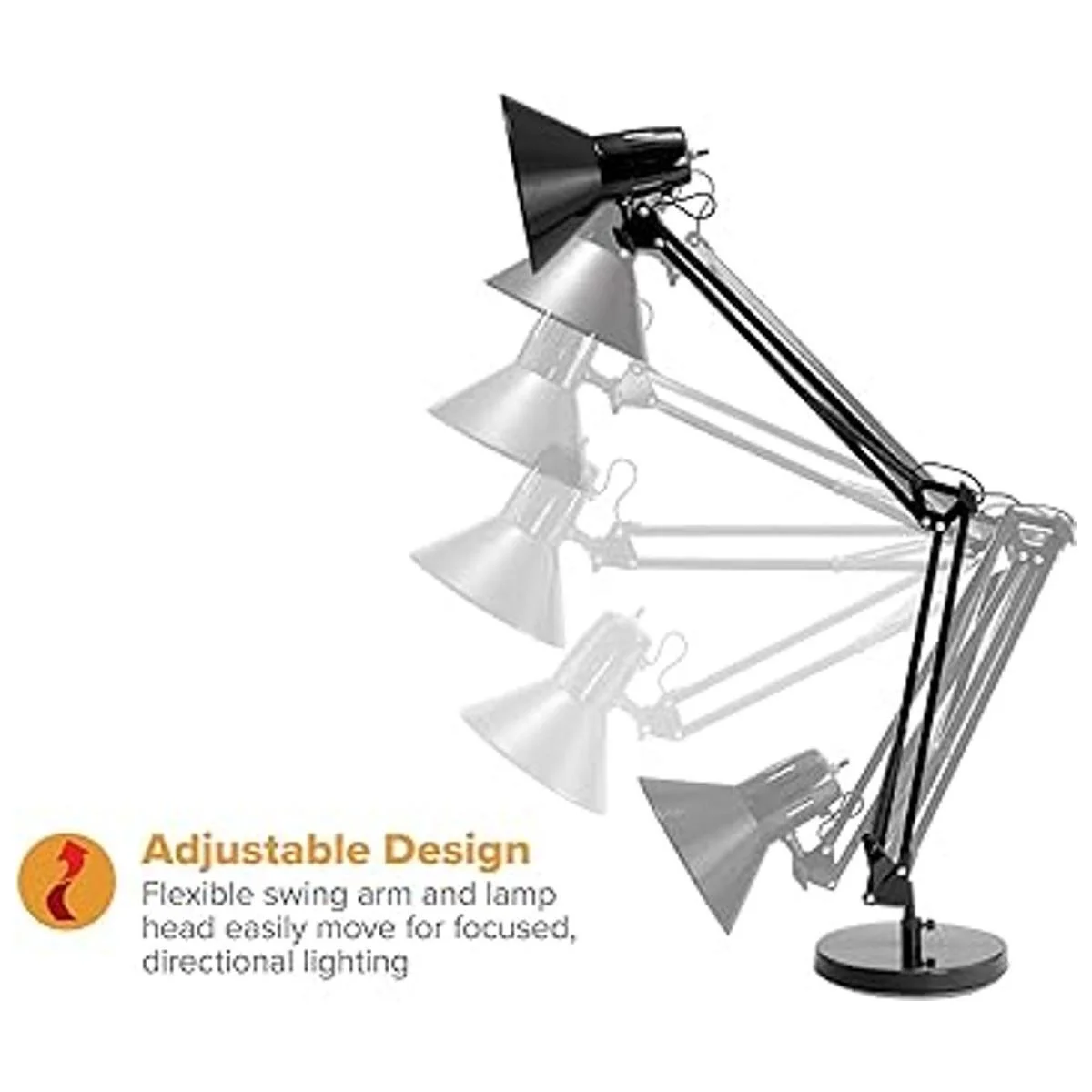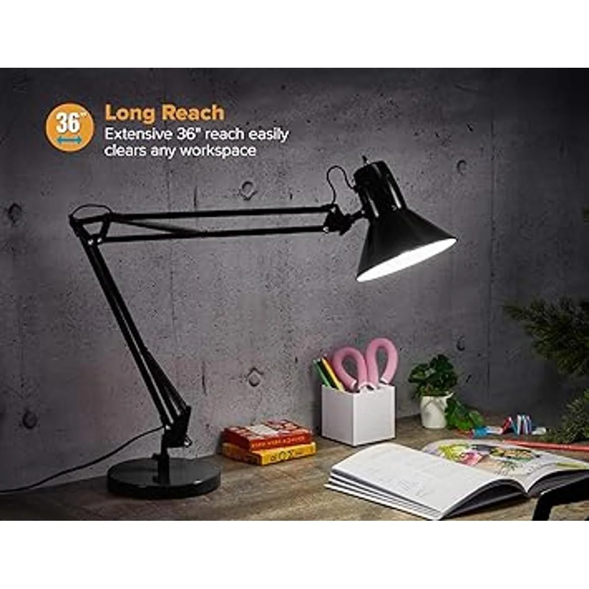Bostitch Office VLF100D Lámpara de escritorio con brazo oscilante, metal, alcance de 36 pulgadas con ajuste de múltiples articulaciones, incluye bombilla LED reemplazable VLF, negro