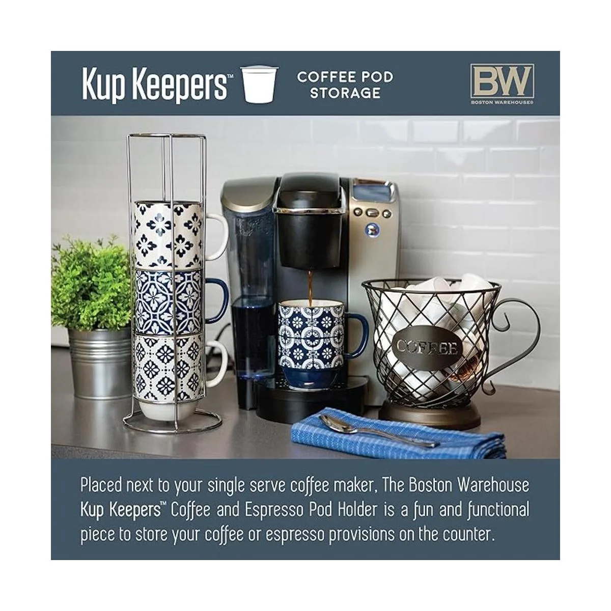 Divertido y funcional: Colocado junto a tu cafetera de una sola porción, el soporte para cápsulas de café Boston Warehouse Kup Keeper es una pieza divertida y funcional para almacenar tus provisiones de café o expreso, kups y cápsulas en el mostrador. Tu cocina se transforma en un café o bar.