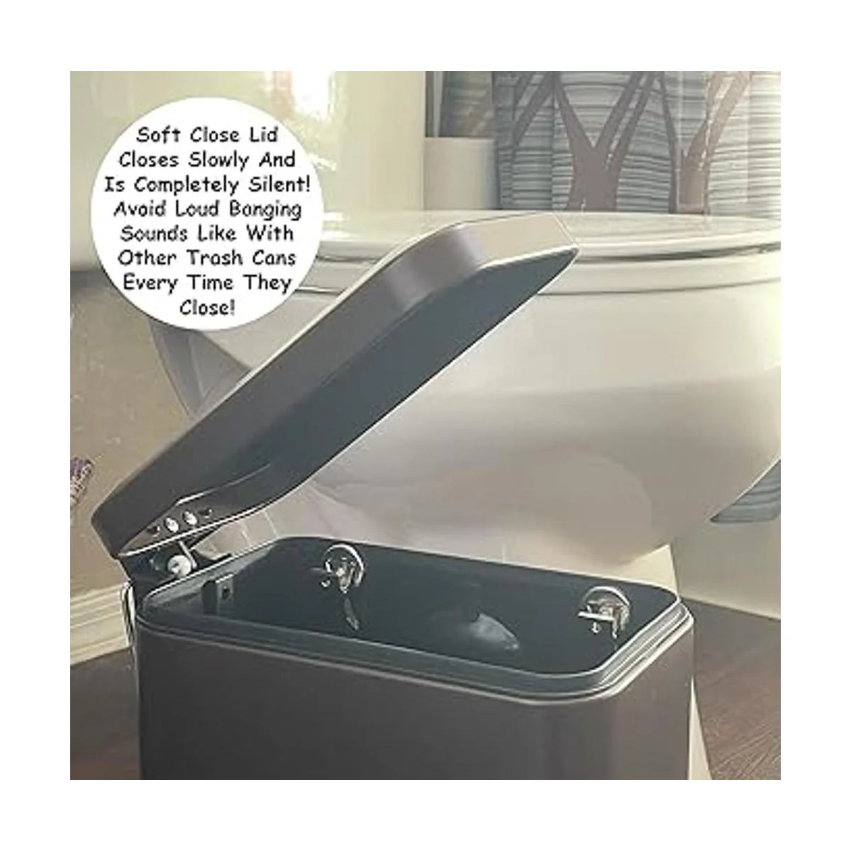 Este es el cubo de basura más silencioso que utilizarás sin ruidos molestos. La tapa suave no hace ruido, simple y automático del cubo de basura se abre y cierra.