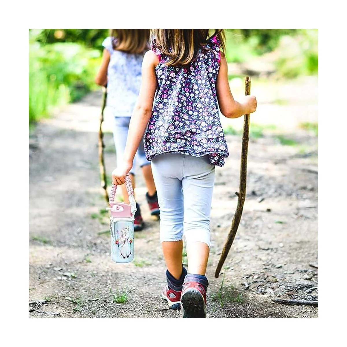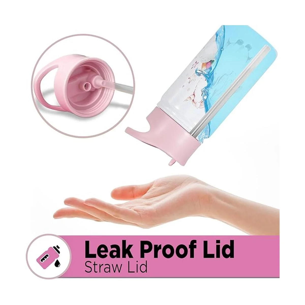 Tapa y asa incluidas: un mango de cordón con dos tonos de rosa, y una bonita tapa rosa viene con la botella para un kit completo y divertido de agua potable. No hay necesidad de una pajita separada. Puedes verter en tazas o beber directamente desde la tapa.