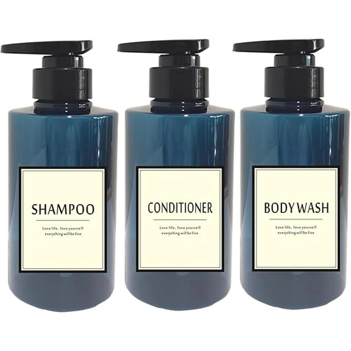 Inlucde: 1 juego 1 botella de champú vacía, 1 botella de acondicionador vacía y 1 botella de lavado corporal vacía