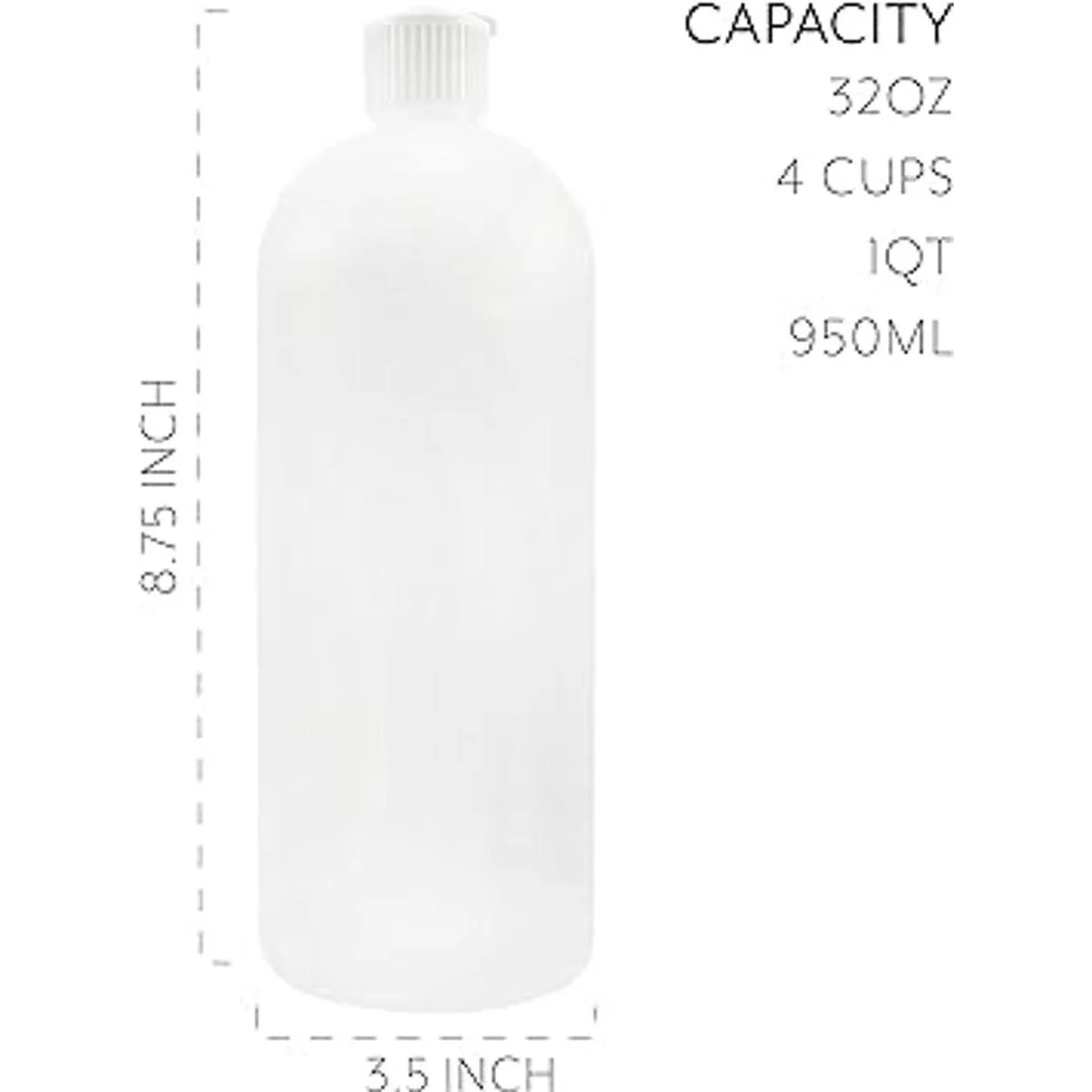 32 onzas: la capacidad es de 32 onzas 4 tazas 1 cuarto de galón; tamaño: 8.75 pulgadas de alto x 3.5 pulgadas de diámetro