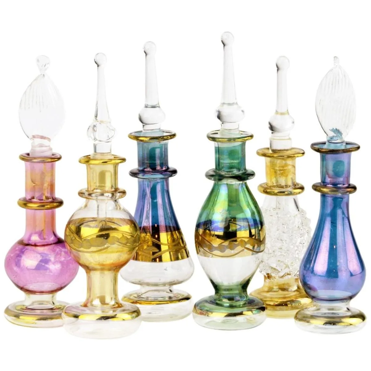 Botellas egipcias de perfume por mayor conjunto de 12 tamaño 2 5 cm soplado a mano con decoración egipcia dorada hecha a mano para perfumes y aceites esenciales de NileCart