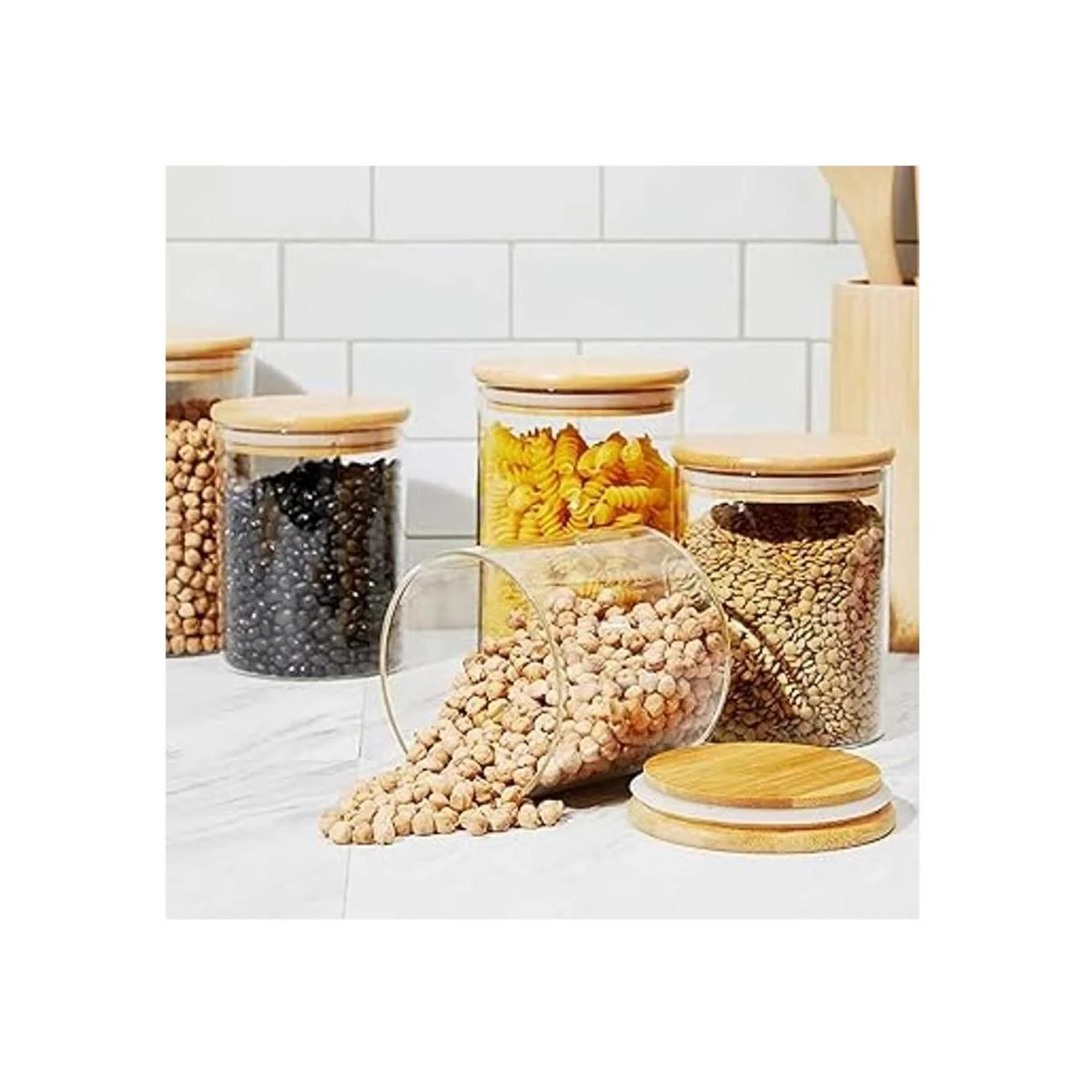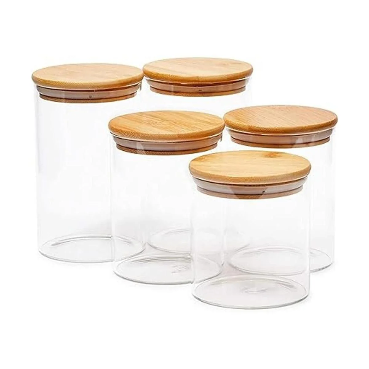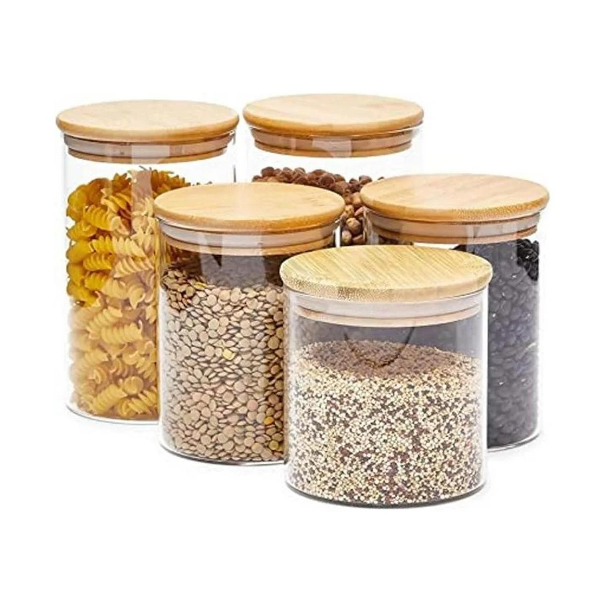 Botes de vidrio con tapas de bambú herméticas, 3 tamaños para almacenamiento de despensa (paquete de 5)