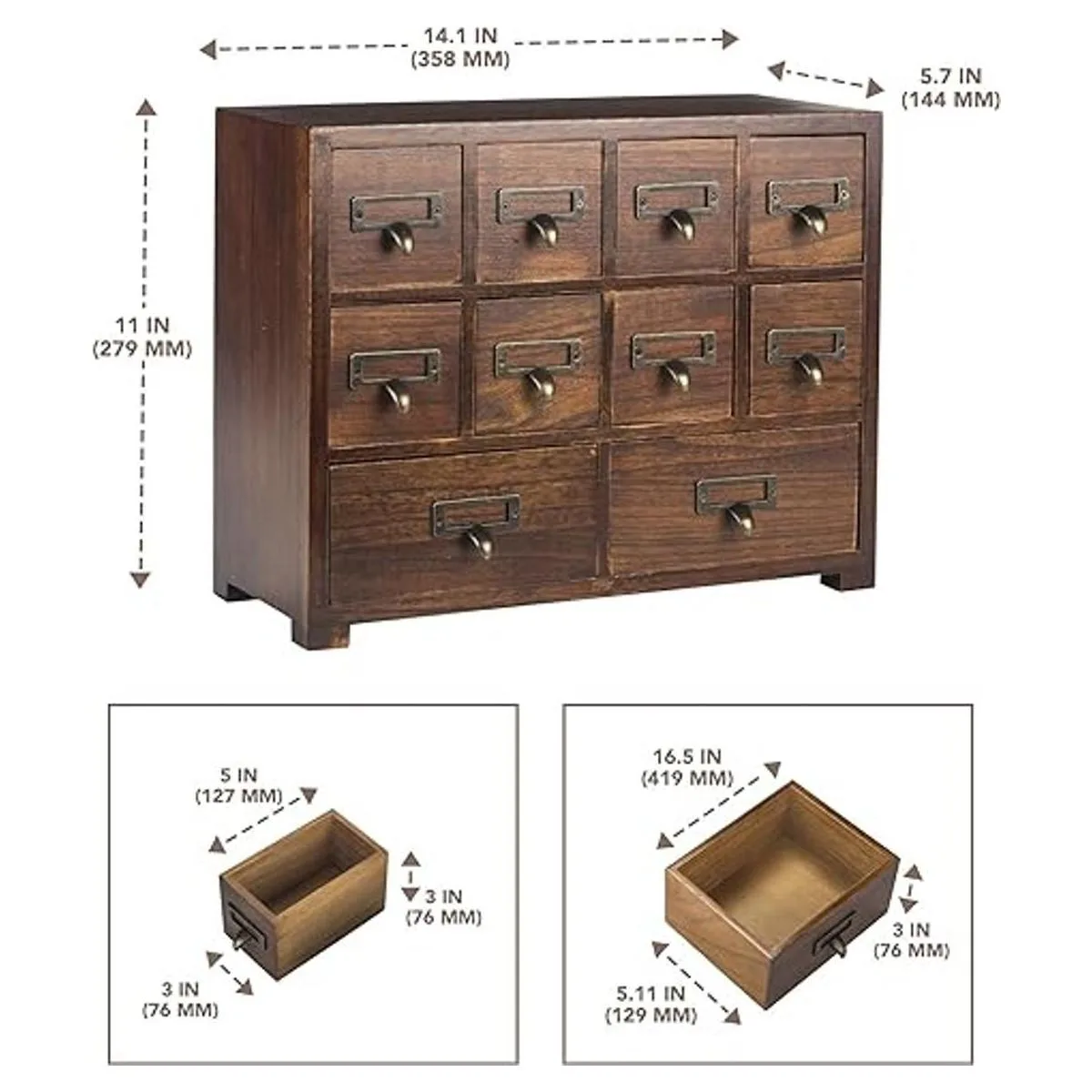 Totalmente ensamblado: cajón: 14.2 pulgadas de ancho x 11.0 pulgadas de alto x 5.7 pulgadas de grosor. Cajones pequeños: 5.1 pulgadas x 3.0 pulgadas x 3.0 pulgadas. Armario grande: 5.1 x 3.0 x 6.5 pulgadas.