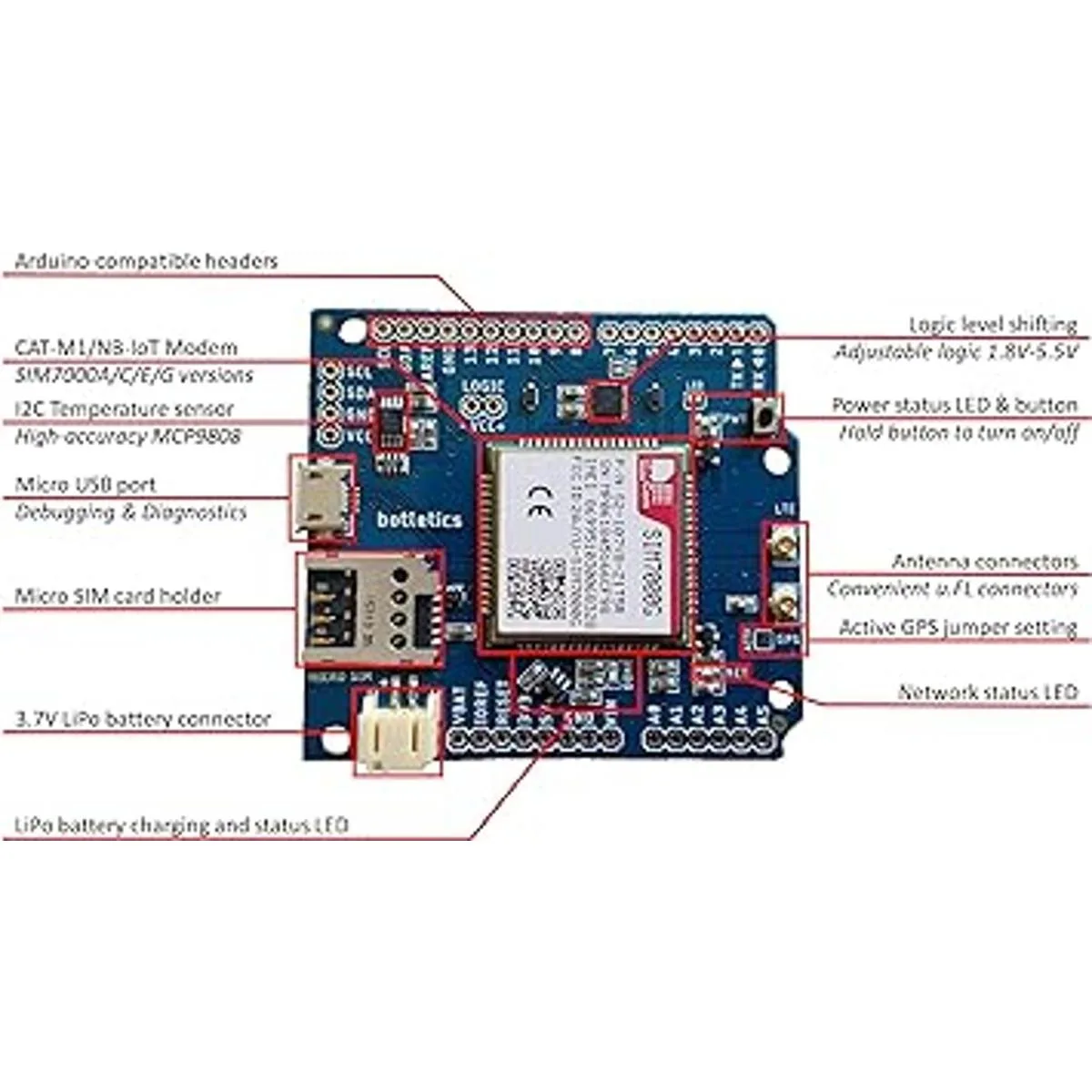 Botletics SIM7000 LTE CATM1 NBIoT Celular GPS Antena Shield Kit para Arduino SIM7000A