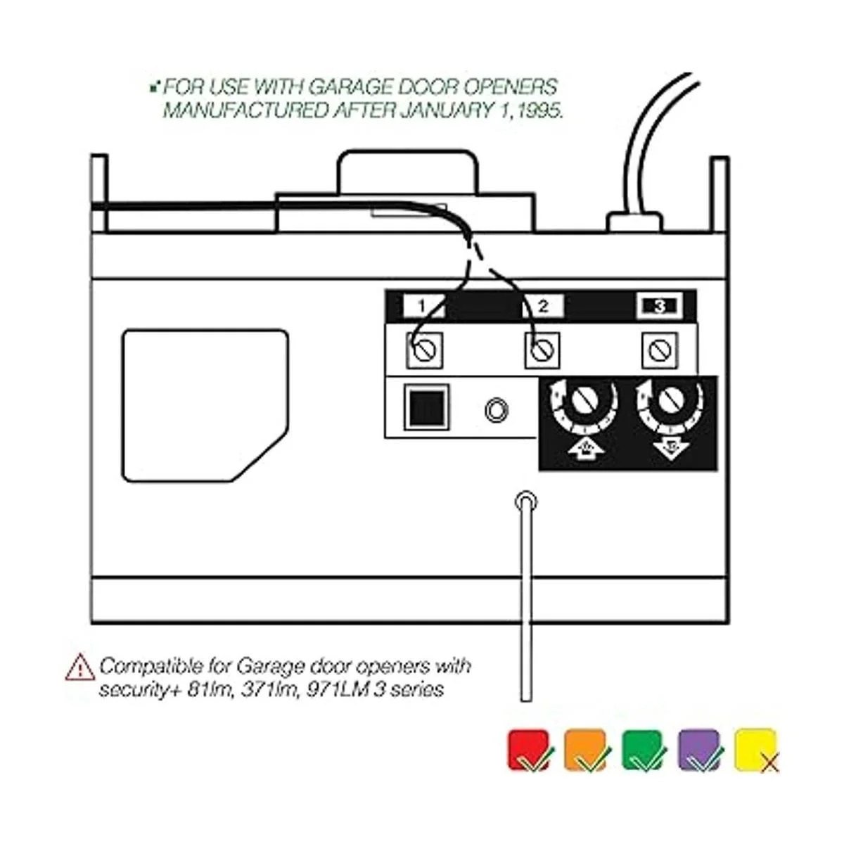 Aviso: desconecta la alimentación antes de la instalación para mayor seguridad; el panel de control de puerta de garaje es compatible con sistemas de abridor de puerta de garaje 41A52731 78LM; los cables rojos y blancos no están incluidos